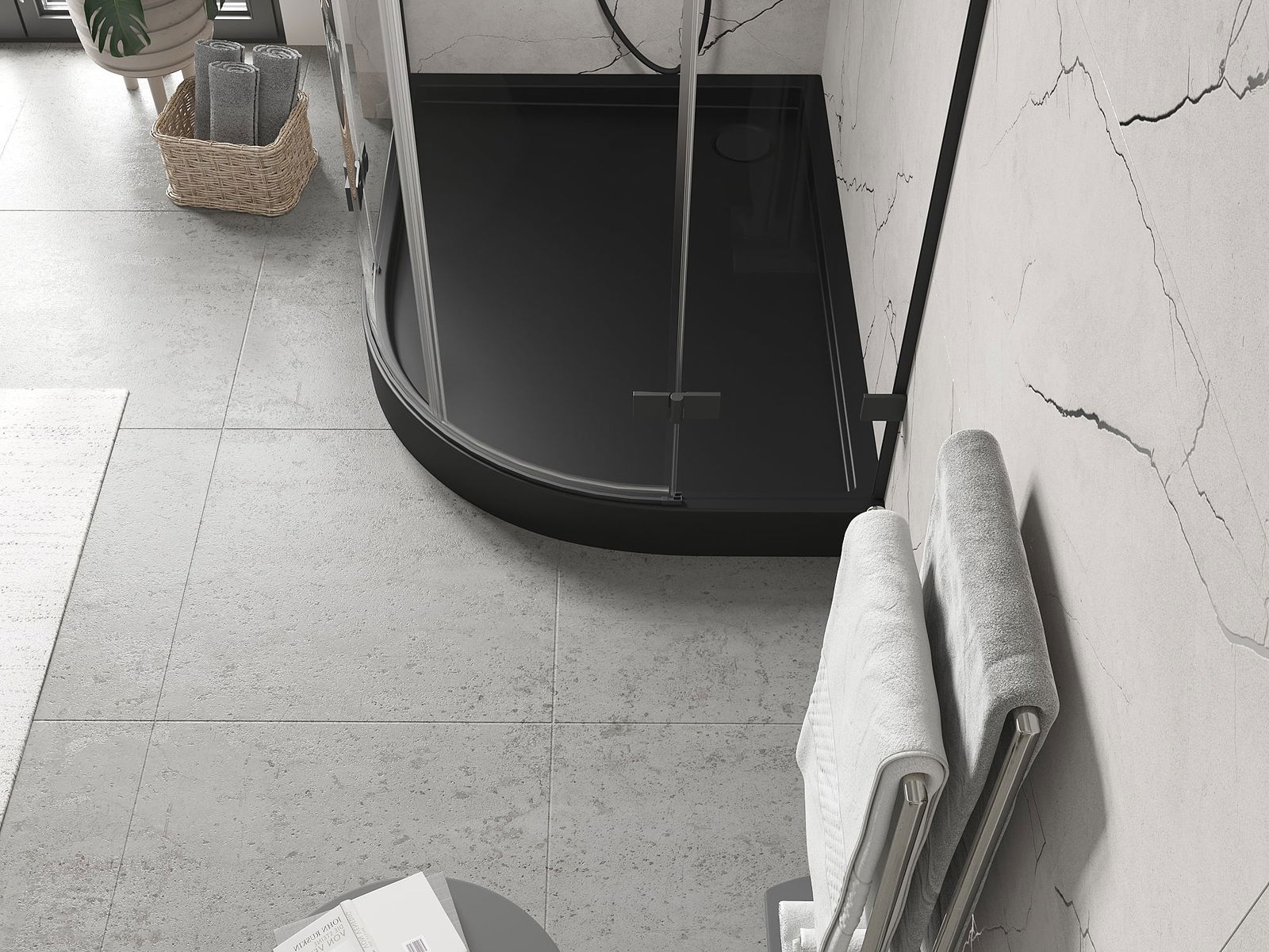 Mexen Flow+ base de duche semicircular assimétrica esquerda 100 x 90 cm, preto mate - 46Q709010LH