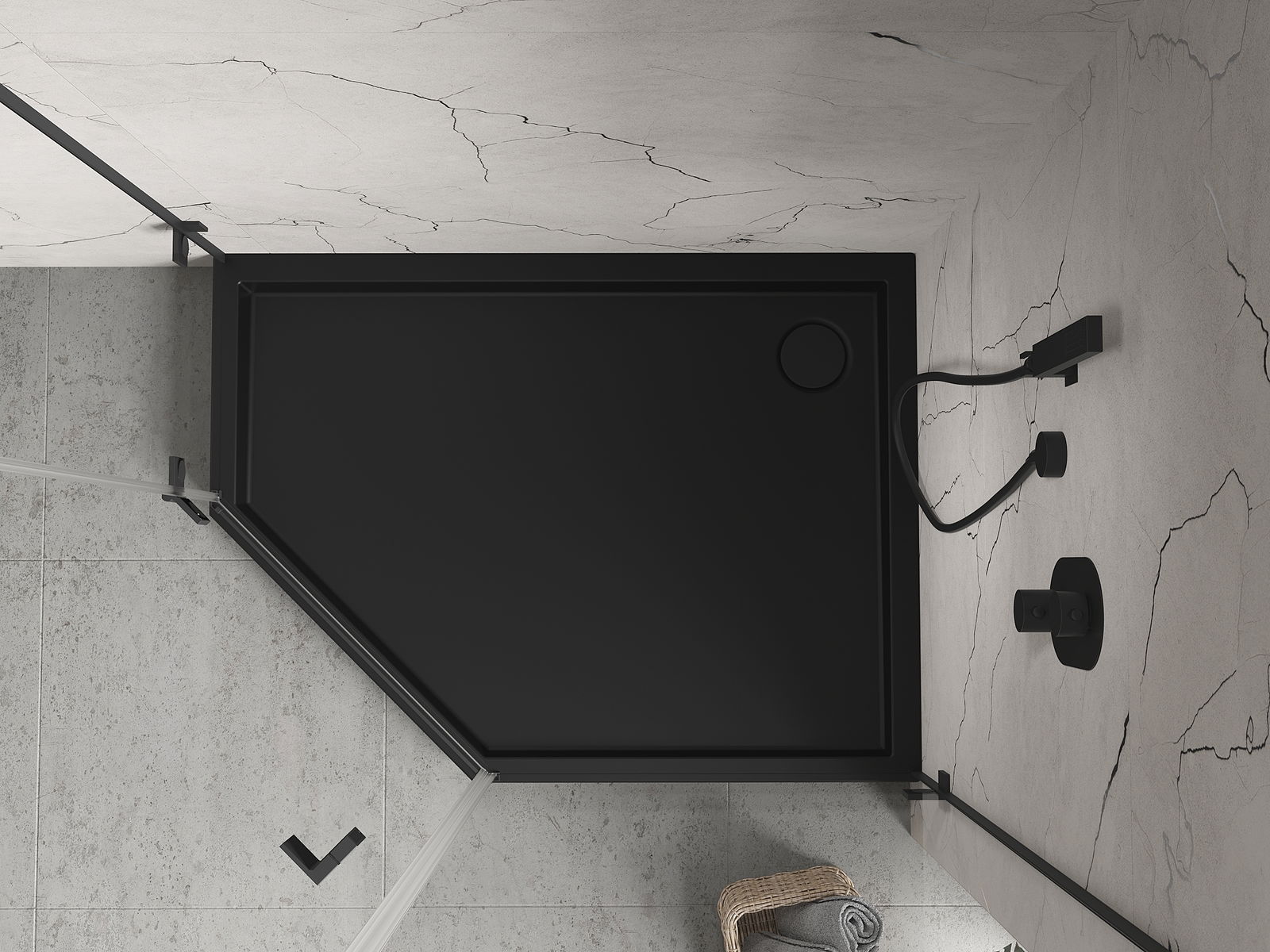 Mexen Flow+ base de duche pentagonal direita 100 x 90 cm, preto mate - 46P709010RH