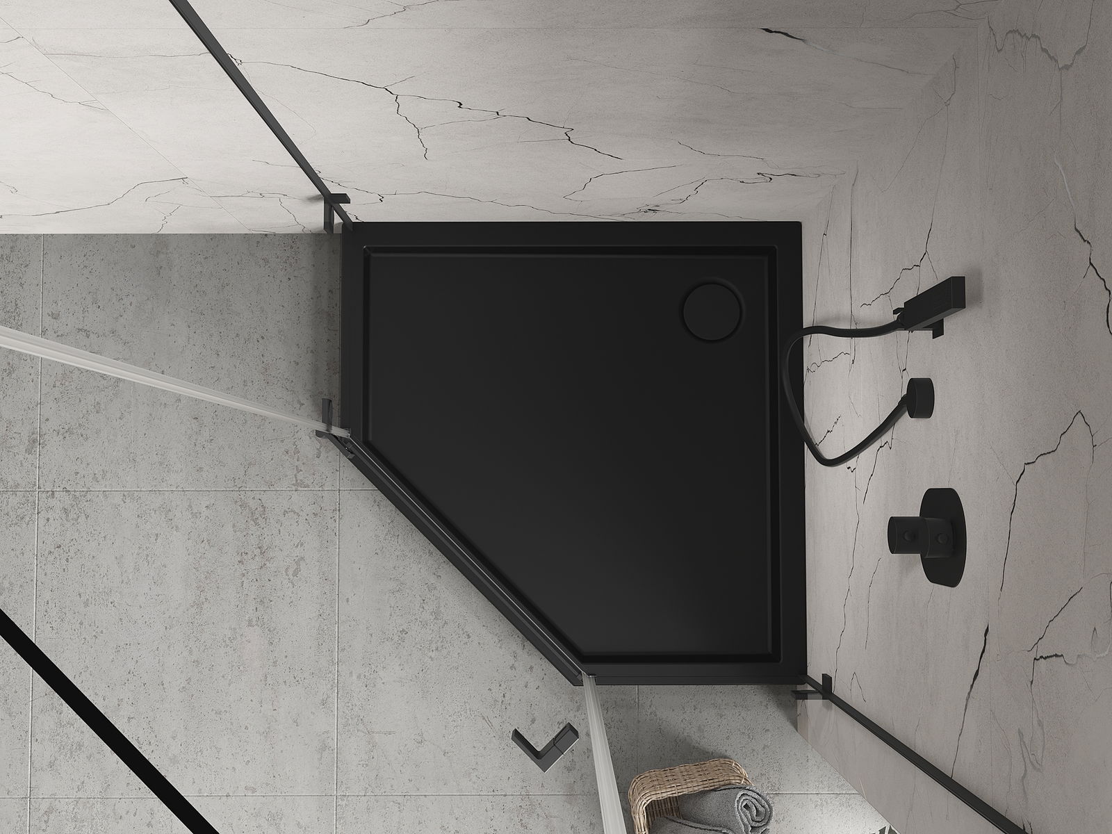 Mexen Flow+ base de duche pentagonal 100 x 100 cm, preto mate - 46P701010H