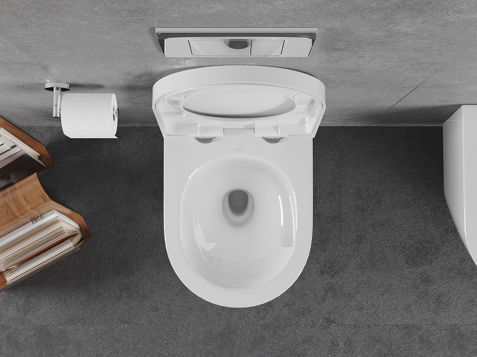 Sistema moderno, no qual todos os elementos de montagem foram ocultados. Não é apenas uma solução estética, mas também muito prática. Facilita a manutenção da casa de banho limpa e assegura um aspeto arrumado.