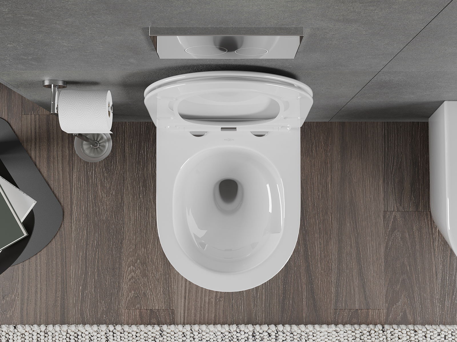 Sistema caracterizado pela ausência de aro tradicional (sem bordo) e por um sistema de descarga espiral específico que lembra um redemoinho. A água descarregada cria um efeito "tornado", enxaguando rápida e eficazmente toda a superfície da sanita, o que ajuda na sua melhor limpeza e previne a acumulação de sujidade.