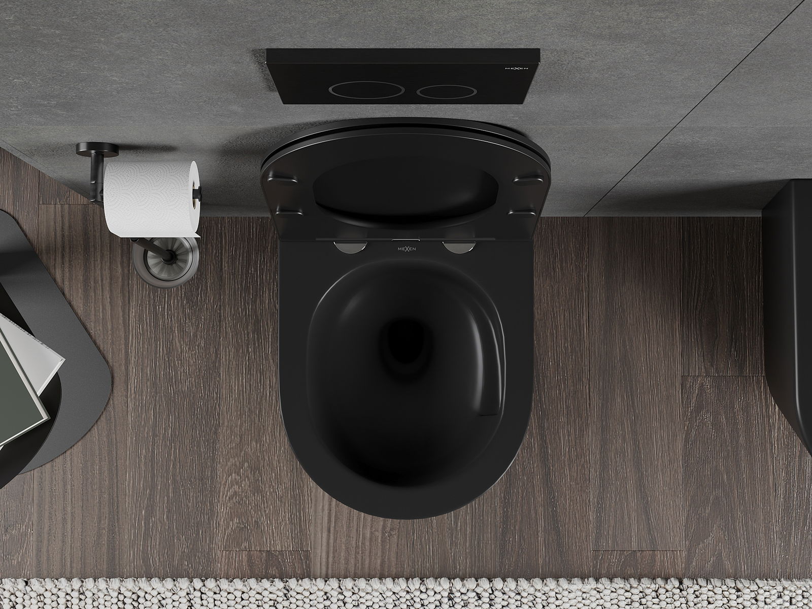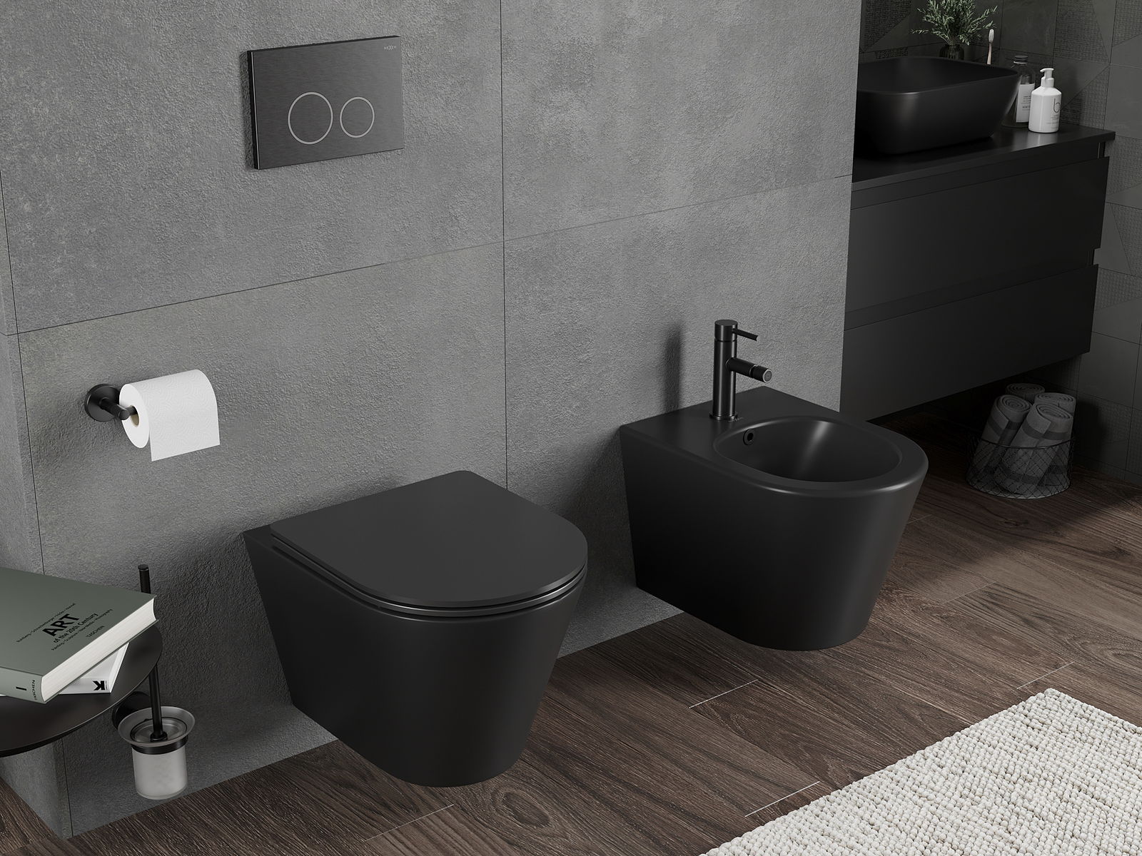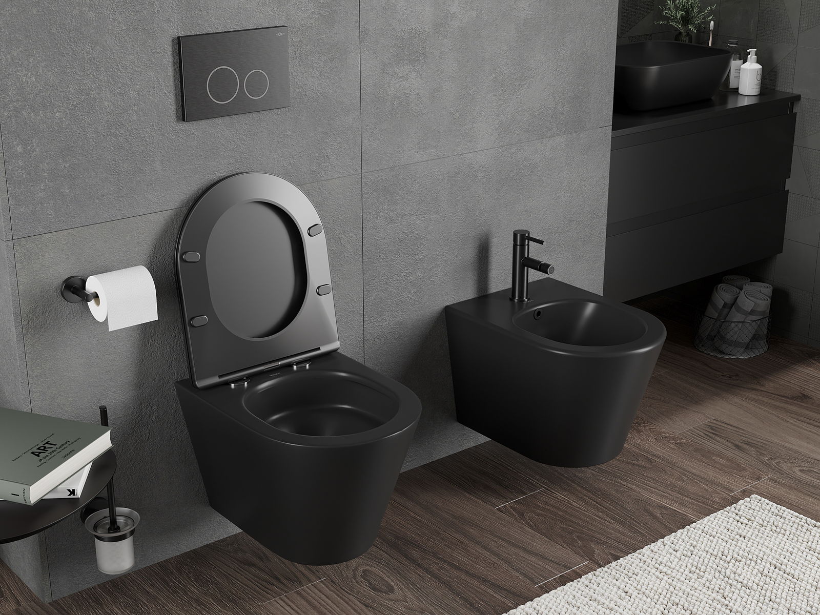 Sistema moderno, no qual todos os elementos de montagem foram ocultados. Não é apenas uma solução estética, mas também muito prática. Facilita a manutenção da casa de banho limpa e assegura um aspeto arrumado.