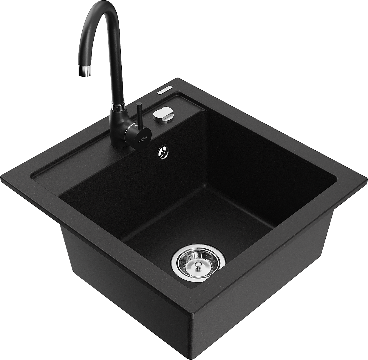 Mexen Vito lava-loiça em granito com 1 cuba e torneira de cozinha Telma, preto - 6503-77-670200-70