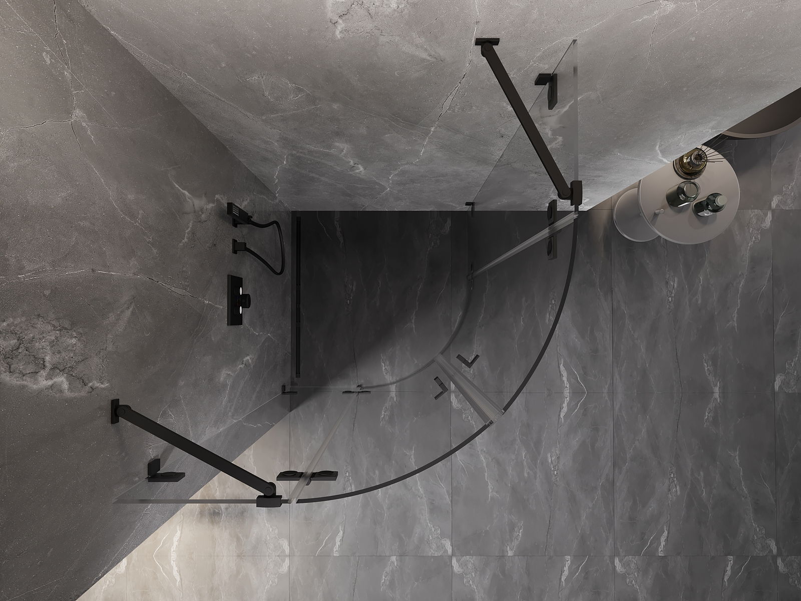 Mexen Lunar cabine de duche semicircular com porta de abertura 80 x 80 cm, transparente, preta - 833-080L-080P-70-00