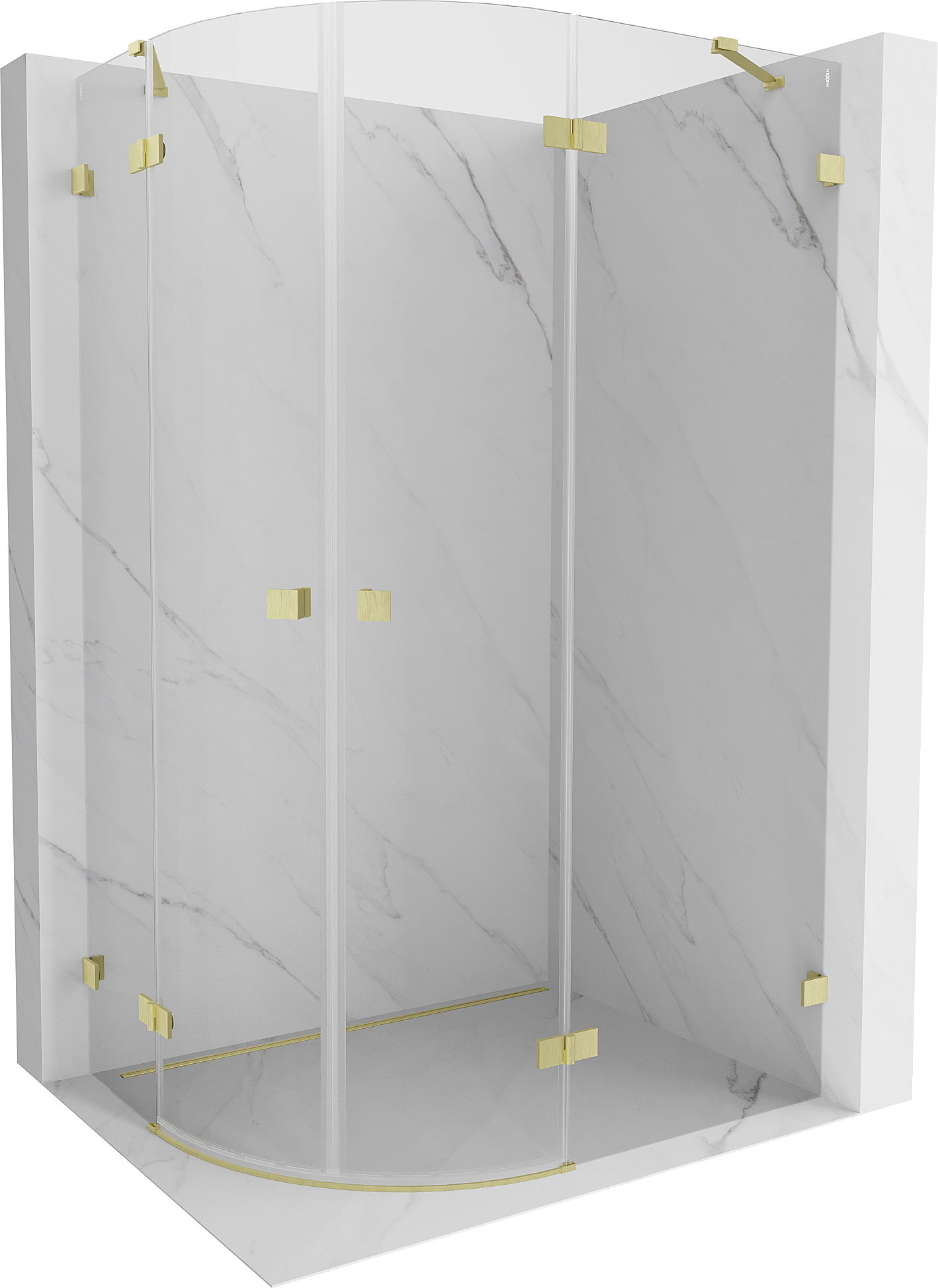 Mexen Lunar cabine de duche semicírculo com porta de abrir direita 100 x 90 cm, transparente, dourado escovado