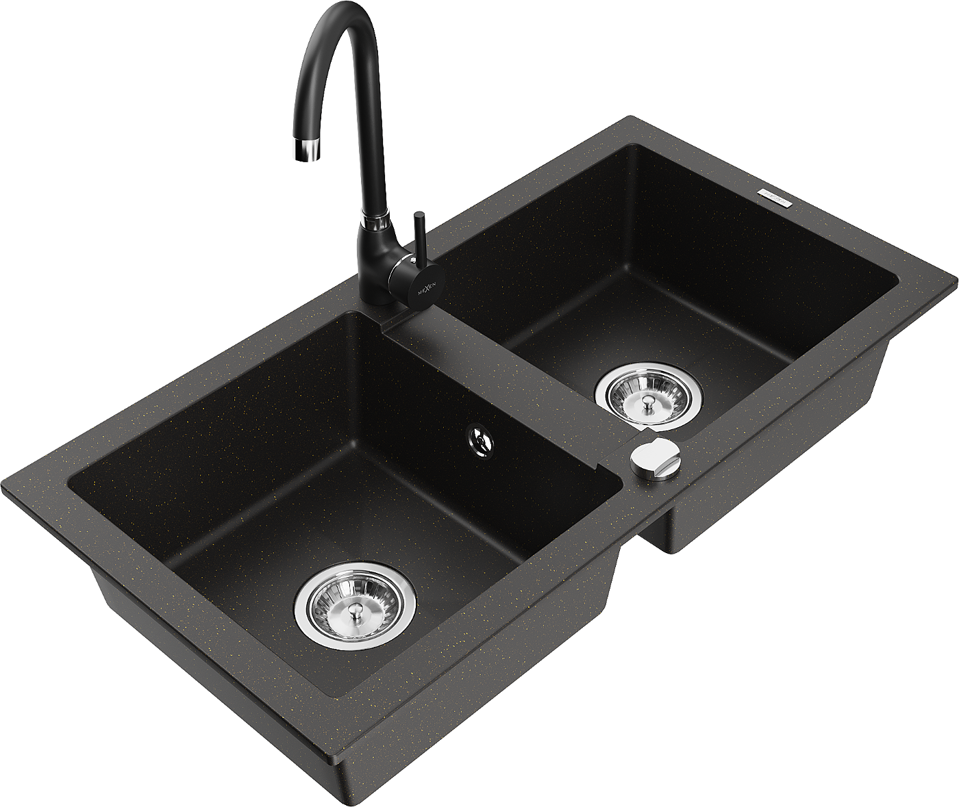 Mexen Mario lava-louça de granito de 2 cubas com torneira de cozinha Telma, preto/dourado - 6504-75-670200-70