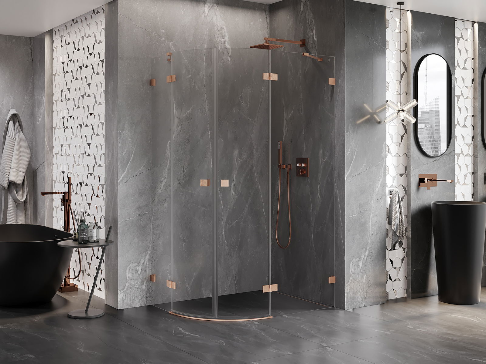 Mexen Lunar cabine de duche semicircular com porta de abrir direita 90 x 80 cm, transparente, cobre escovado