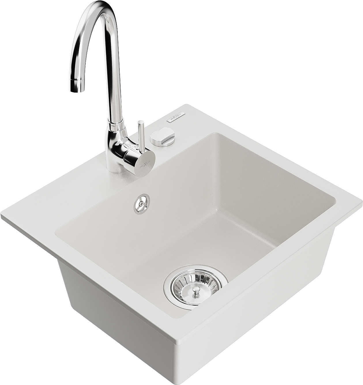 Mexen Milo lava-louça de granito com 1 cuba com torneira de cozinha Telma, branco - 6505-20-670200-00