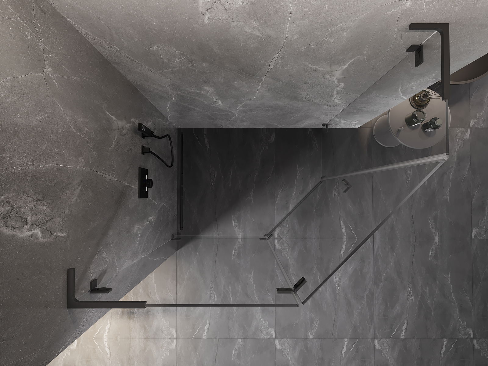 A pega prática e confortável foi feita de metal durável e resistente. A forma moderna combinada com o acabamento ajustado à cor dos perfis confere a todo o conjunto uma aparência moderna e estilosa, realçando a estética de qualquer casa de banho.