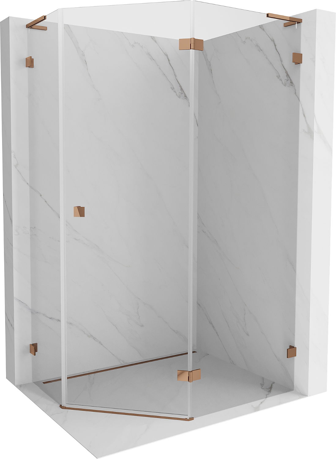 Mexen Lunar L cabine de duche pentagonal de abrir direita 90 x 80 cm, transparente, ouro rosa - 831L-090P-080L-60-00-P