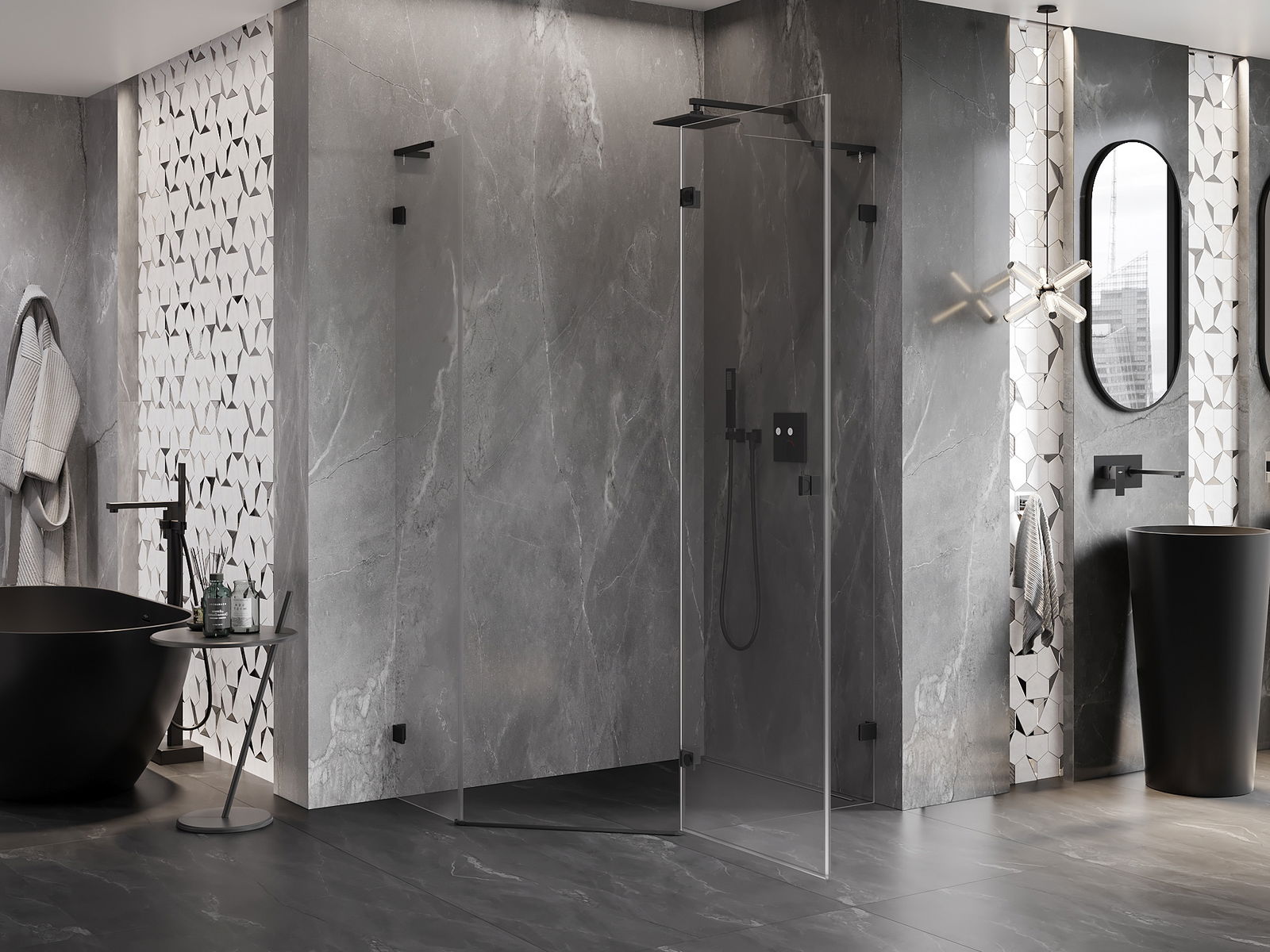 Mexen Lunar L cabine de duche pentagonal articulada direita 90 x 80 cm, transparente, preta - 831L-090P-080L-70-00-P