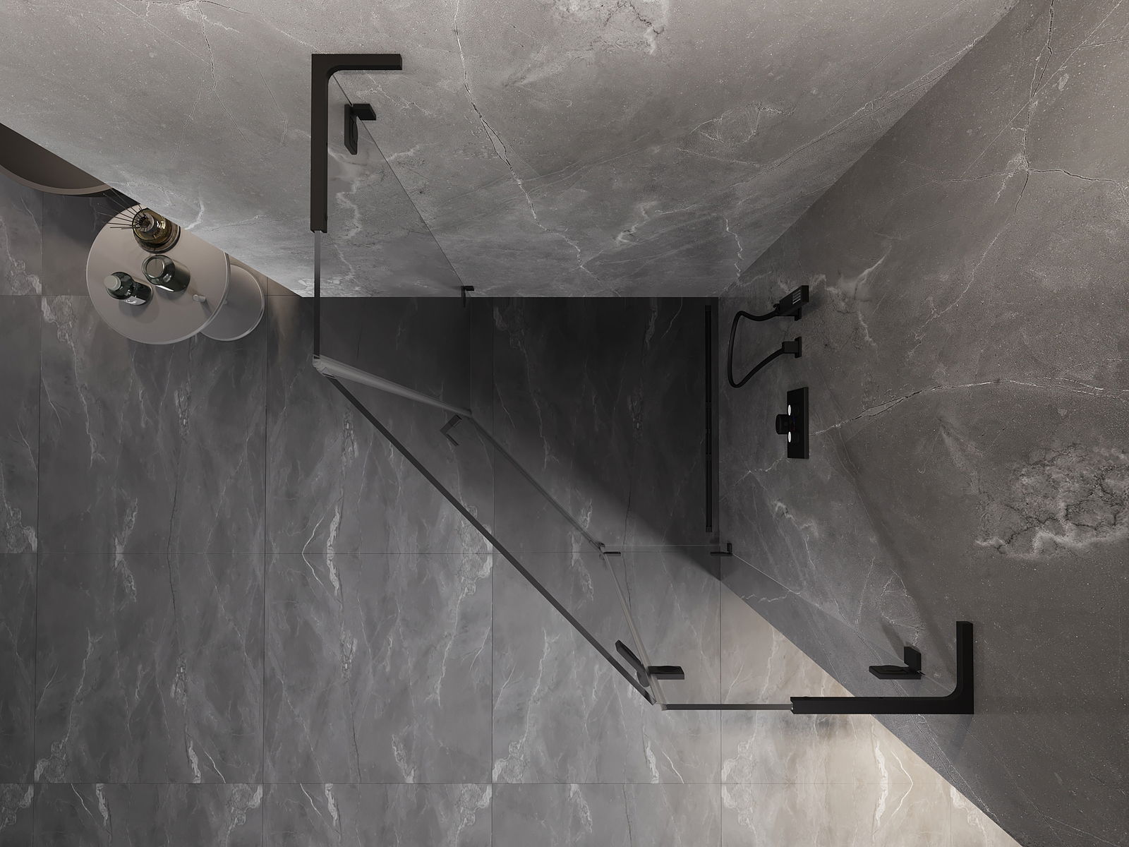 Mexen Lunar L cabine de duche pentagonal com porta de abrir à direita 100 x 100 cm, transparente, preta