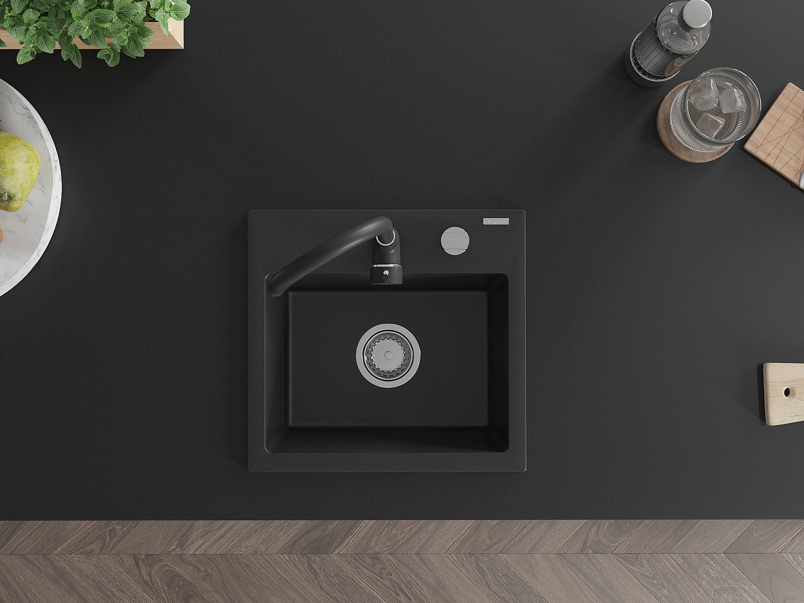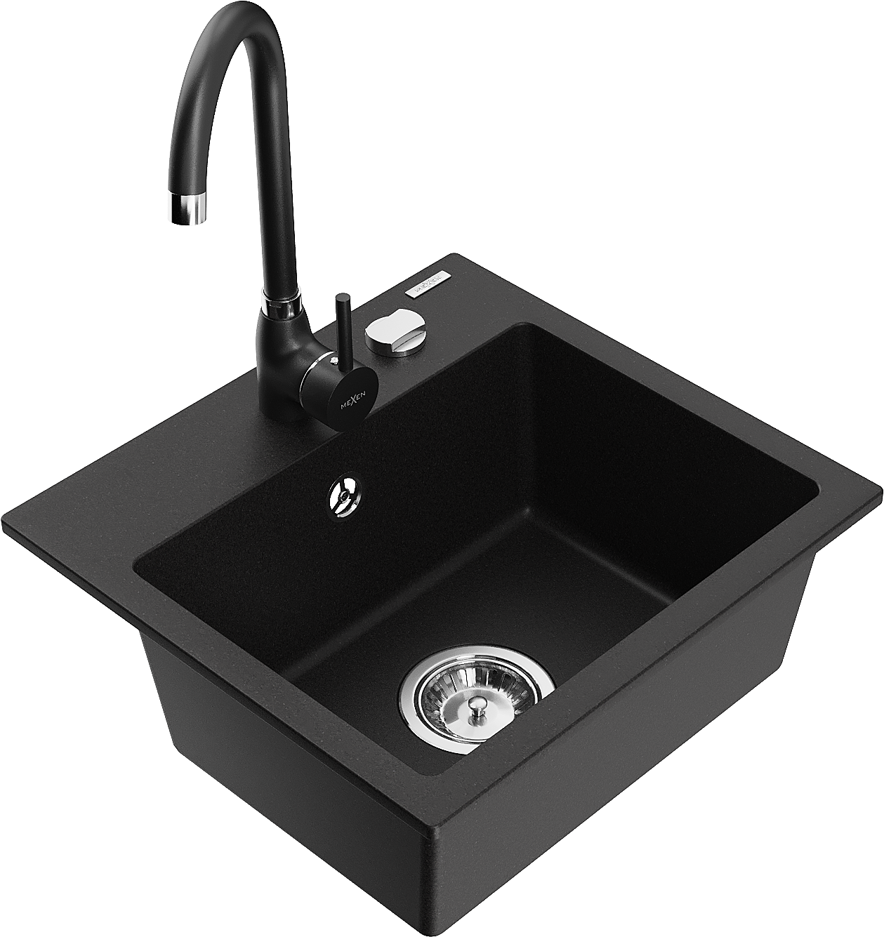 Mexen Milo lava-louça de granito de 1 bacia com torneira de cozinha Telma, preto - 6505-77-670200-70