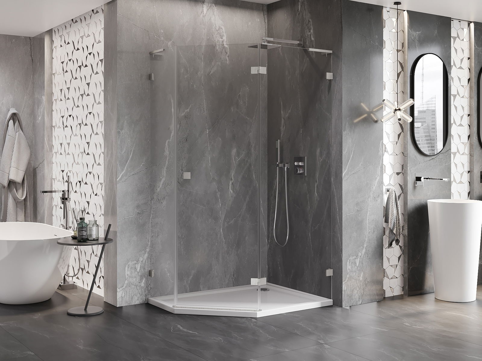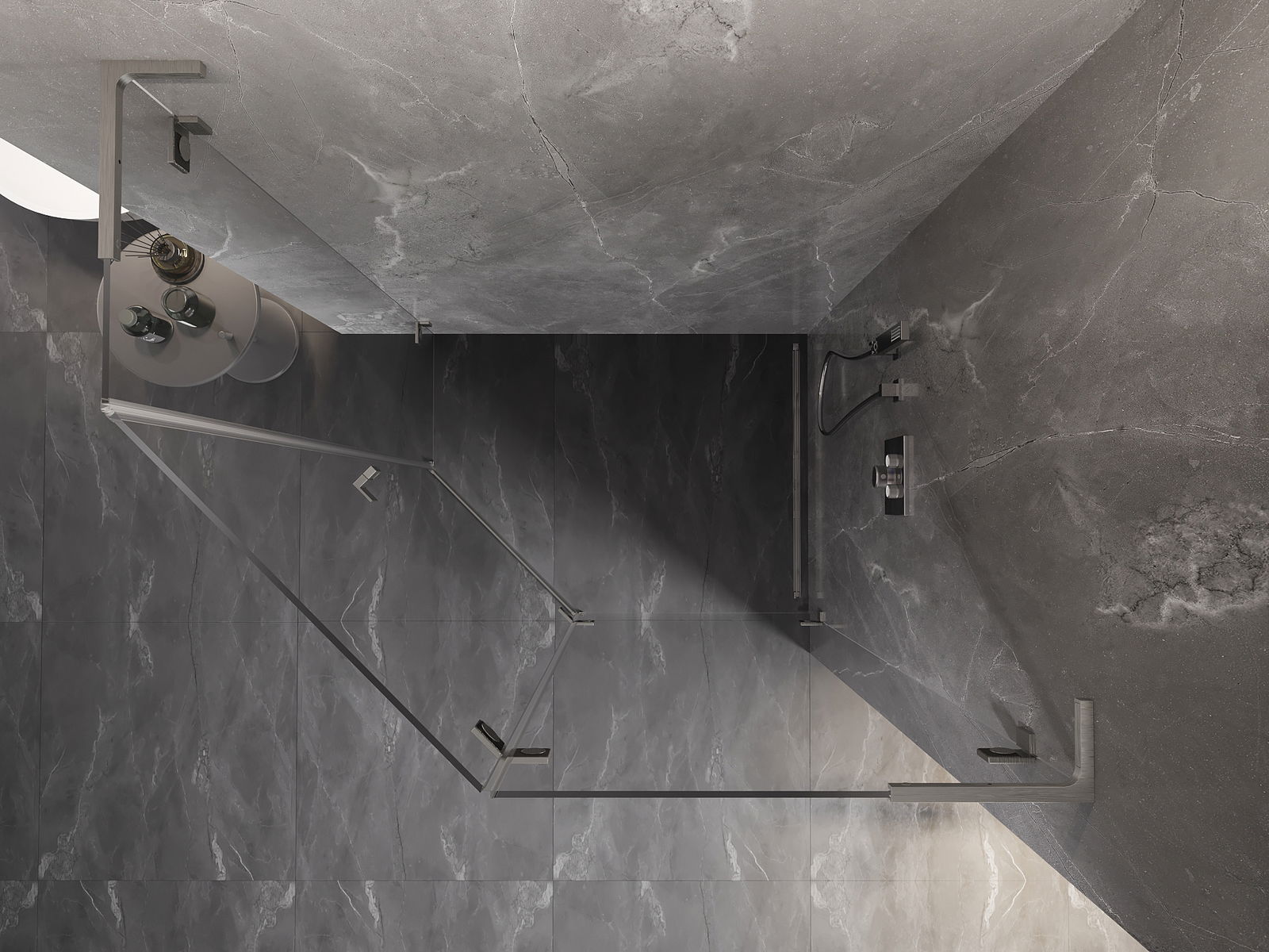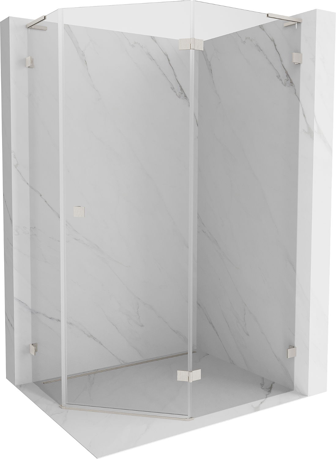 Mexen Lunar L cabine de duche pentagonal de abrir à direita 90 x 80 cm, transparente, níquel escovado - 831L-090P-080L-97-00-P