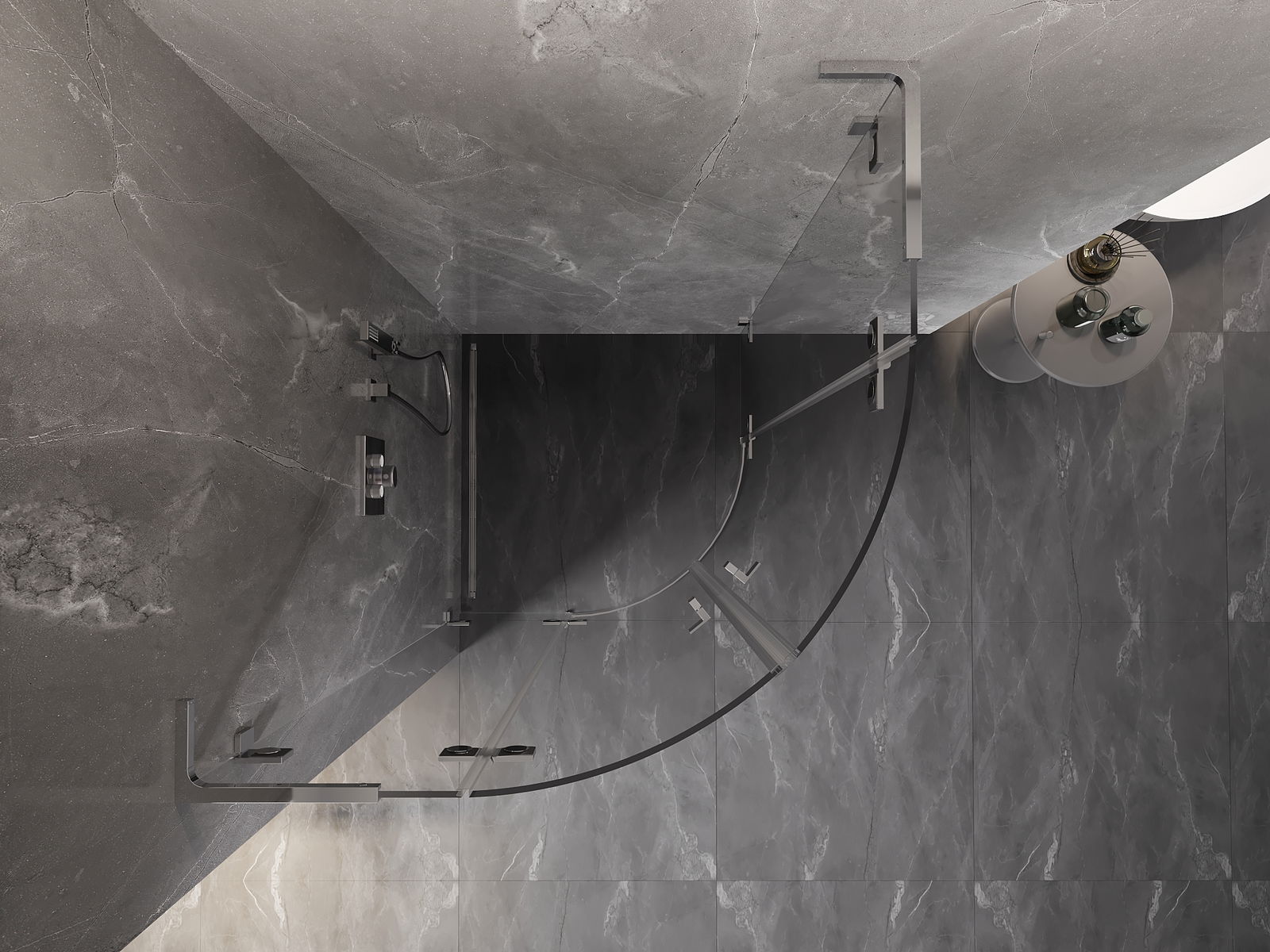 A pega prática e confortável foi feita de metal durável e resistente. A forma moderna combinada com o acabamento ajustado à cor dos perfis confere a todo o conjunto uma aparência moderna e estilosa, realçando a estética de qualquer casa de banho.