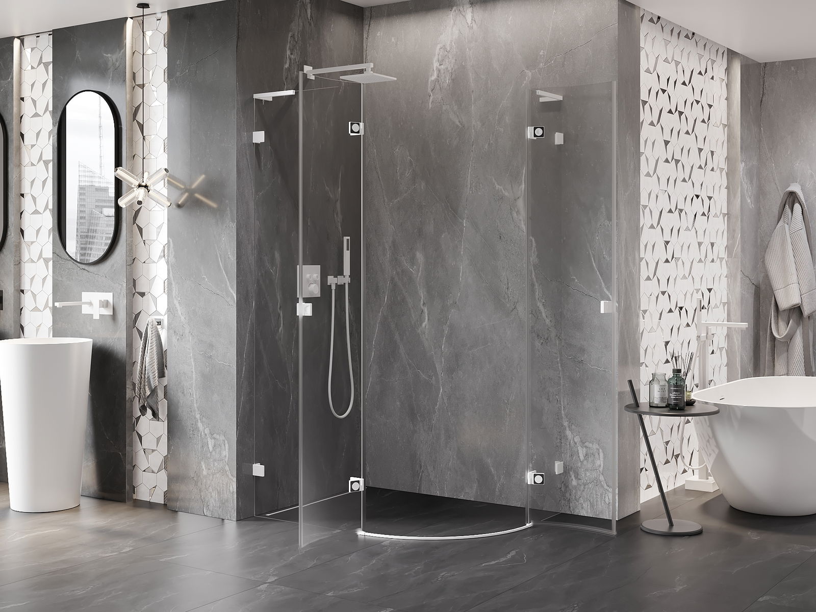 A pega prática e confortável foi feita de metal durável e resistente. A forma moderna combinada com o acabamento ajustado à cor dos perfis confere a todo o conjunto uma aparência moderna e estilosa, realçando a estética de qualquer casa de banho.
