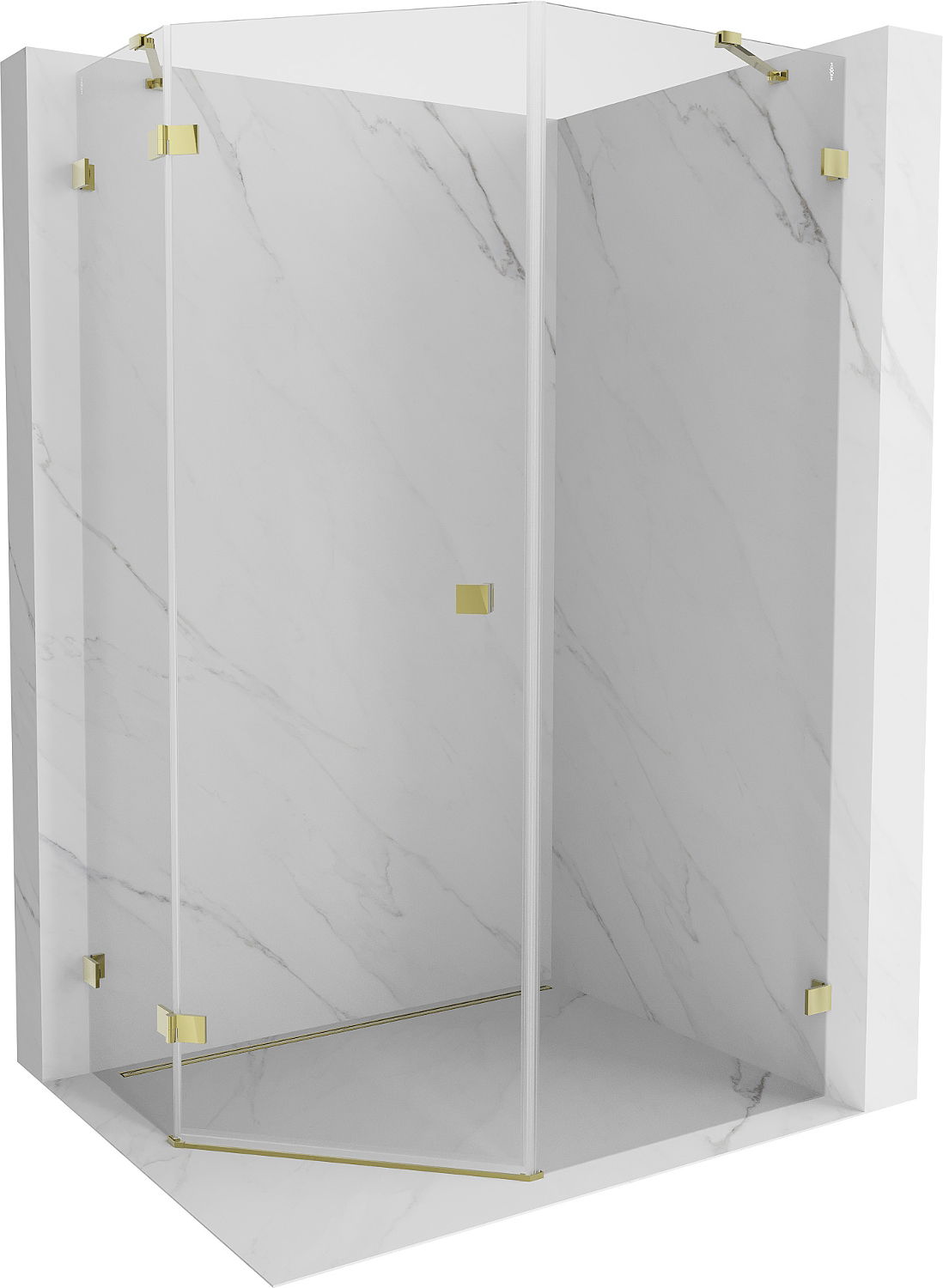 Mexen Lunar cabine de duche pentagonal de abrir à esquerda 80 x 90 cm, transparente, dourada - 831-080L-090P-50-00-L