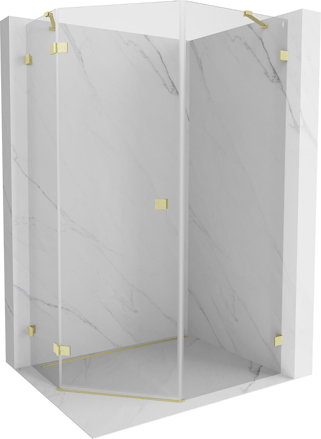 Mexen Lunar cabine de duche pentagonal de abrir à esquerda 80 x 100 cm, transparente, dourada escovada - 831-080L-100P-55-00-L