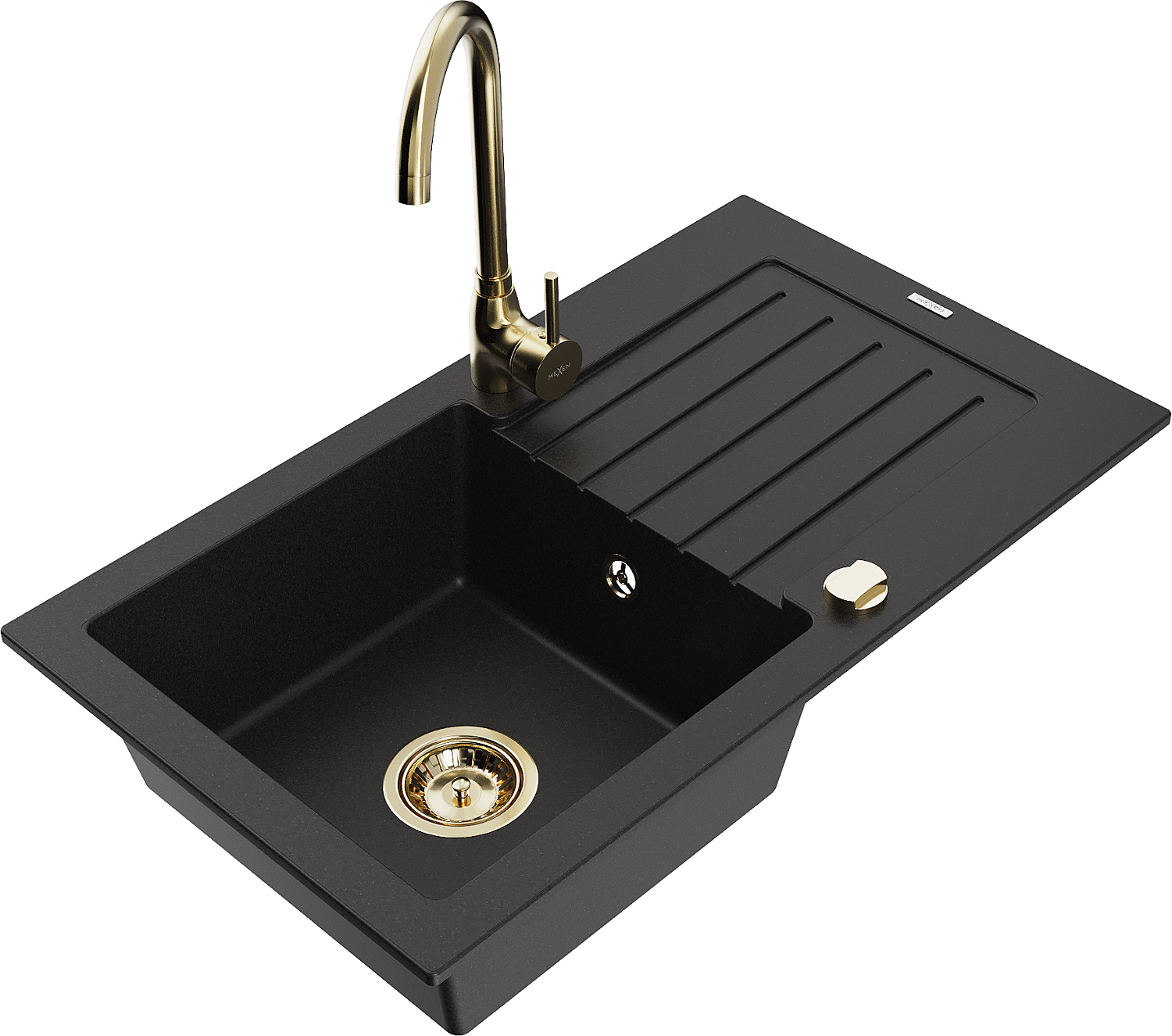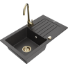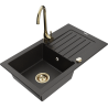 Mexen Pablo lava-louça de granito de 1 cuba com escorredor e torneira de cozinha Telma, preto - 6510-77-670200-50