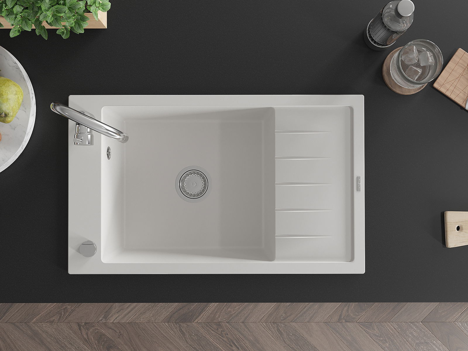 A superfície do lava-loiça é muito bem endurecida, destacando-se pela excecional resistência a danos mecânicos e riscos. O material durável permite desfrutar de uma boa aparência do lava-loiça por muitos anos de uso.