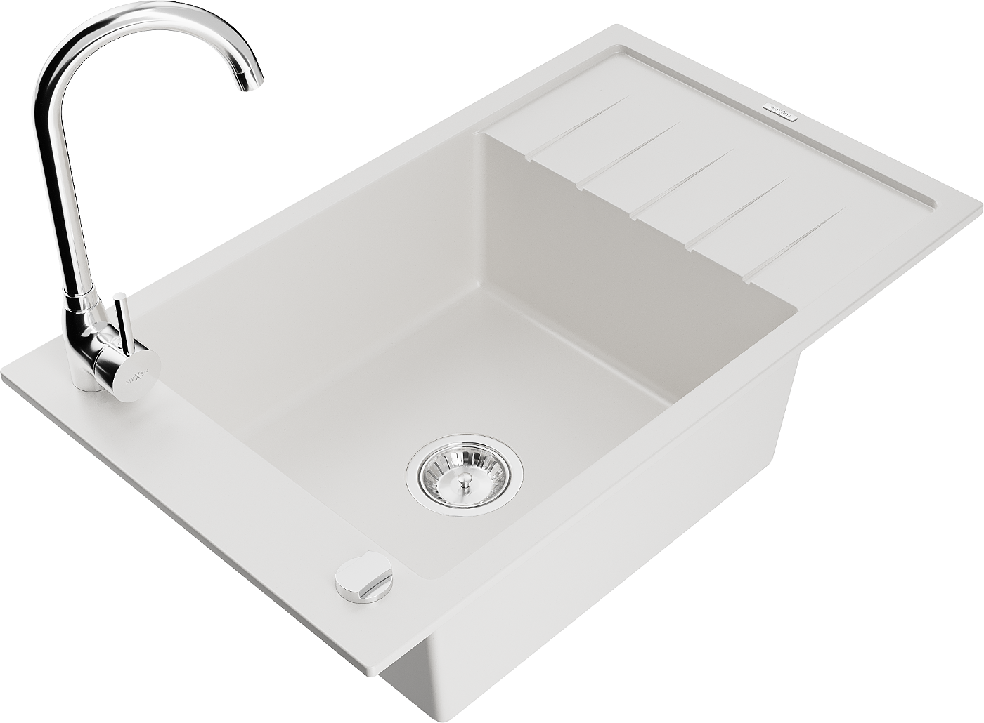 Mexen Elias lava-loiça de granito 1-cuba com escorredor e torneira de cozinha Telma, branco - 6511-20-670200-00
