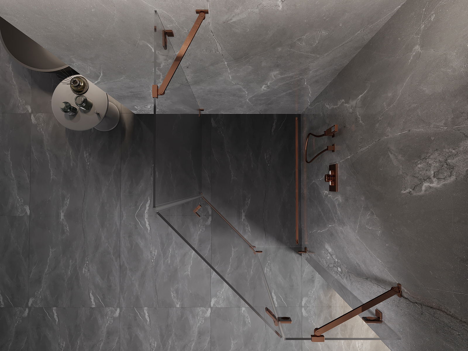 Mexen Lunar cabine de duche pentagonal de abrir à direita 80 x 100 cm, transparente, ouro rosa - 831-080P-100L-60-00-P