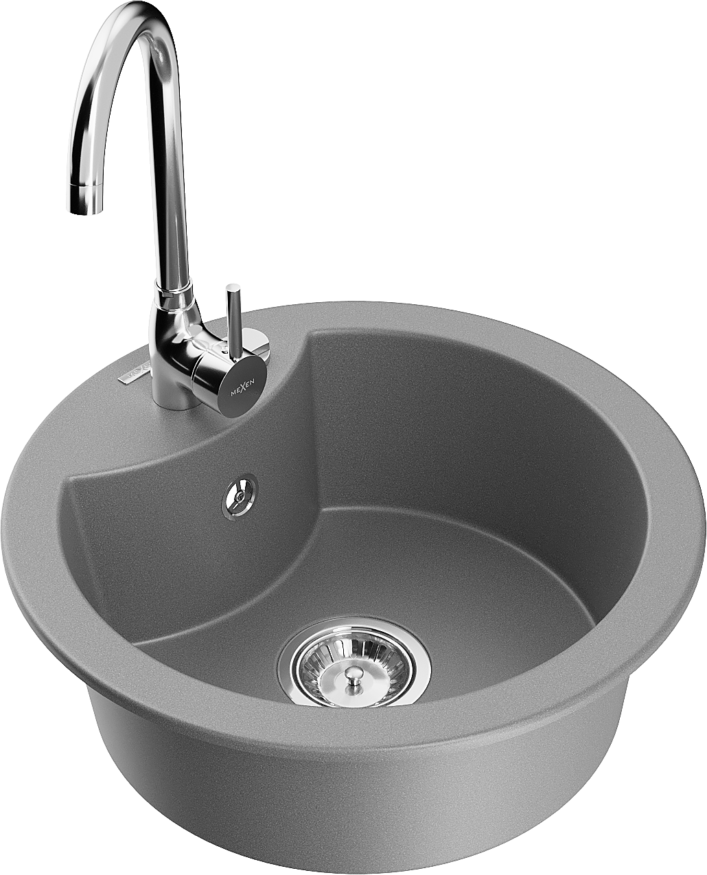 Mexen Diego lava-loiça de granito de 1 bacia com torneira de cozinha Telma, cinza - 6512-71-670200-00