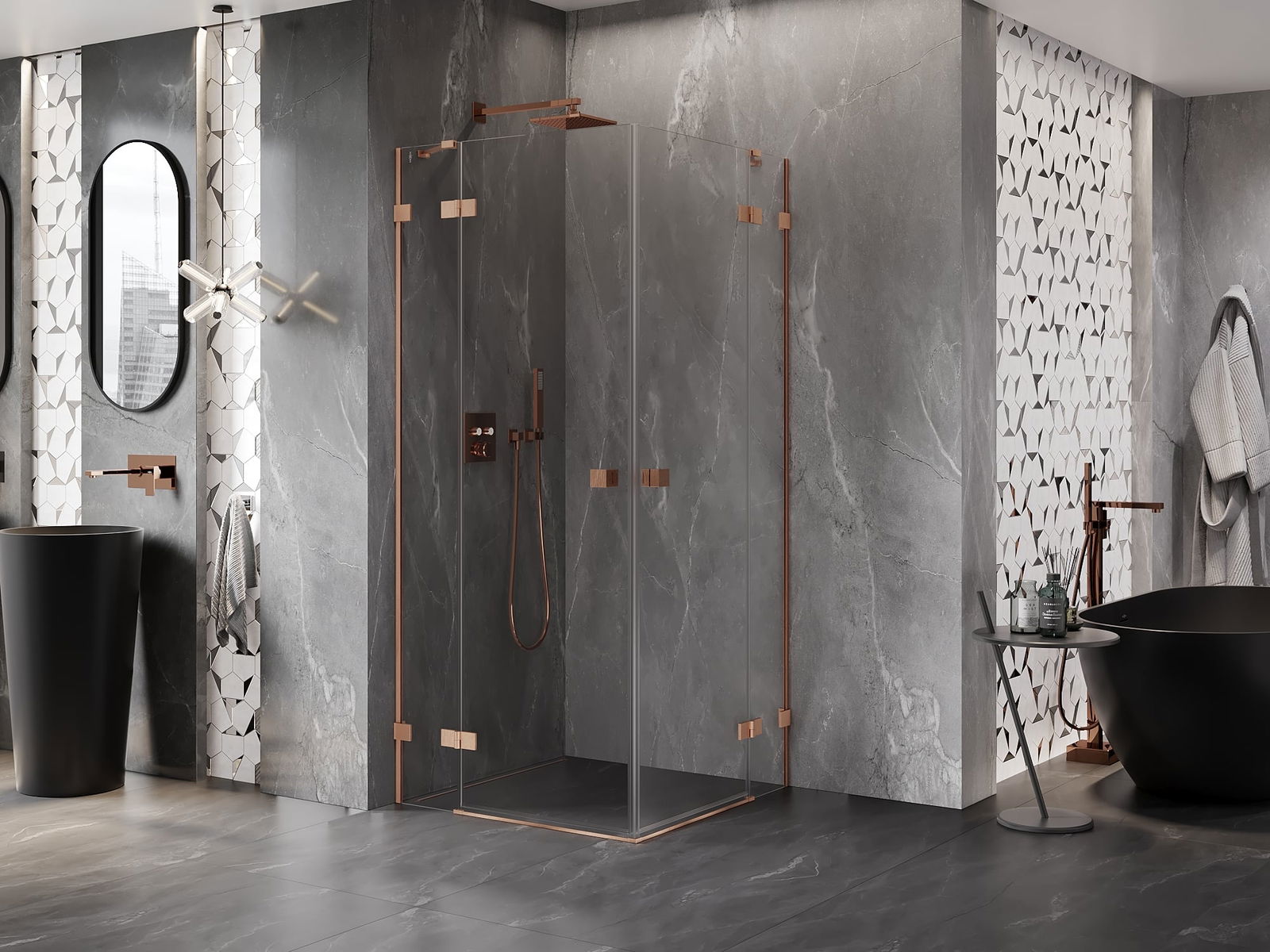 A pega prática e confortável foi feita de metal durável e resistente. A forma moderna combinada com o acabamento ajustado à cor dos perfis confere a todo o conjunto uma aparência moderna e estilosa, realçando a estética de qualquer casa de banho.