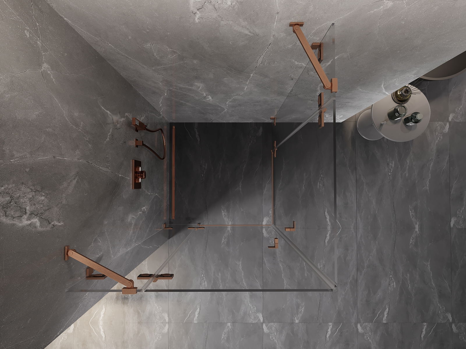 Mexen Lunar Duo cabine de duche pivotante 75 x 75 cm, transparente, cobre escovado - 834-075L-075P-65-00