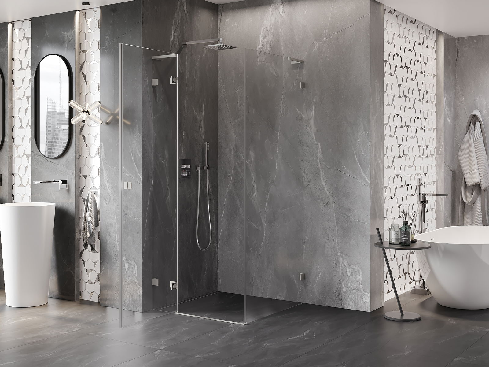 A pega prática e confortável foi feita de metal durável e resistente. A forma moderna combinada com o acabamento ajustado à cor dos perfis confere a todo o conjunto uma aparência moderna e estilosa, realçando a estética de qualquer casa de banho.