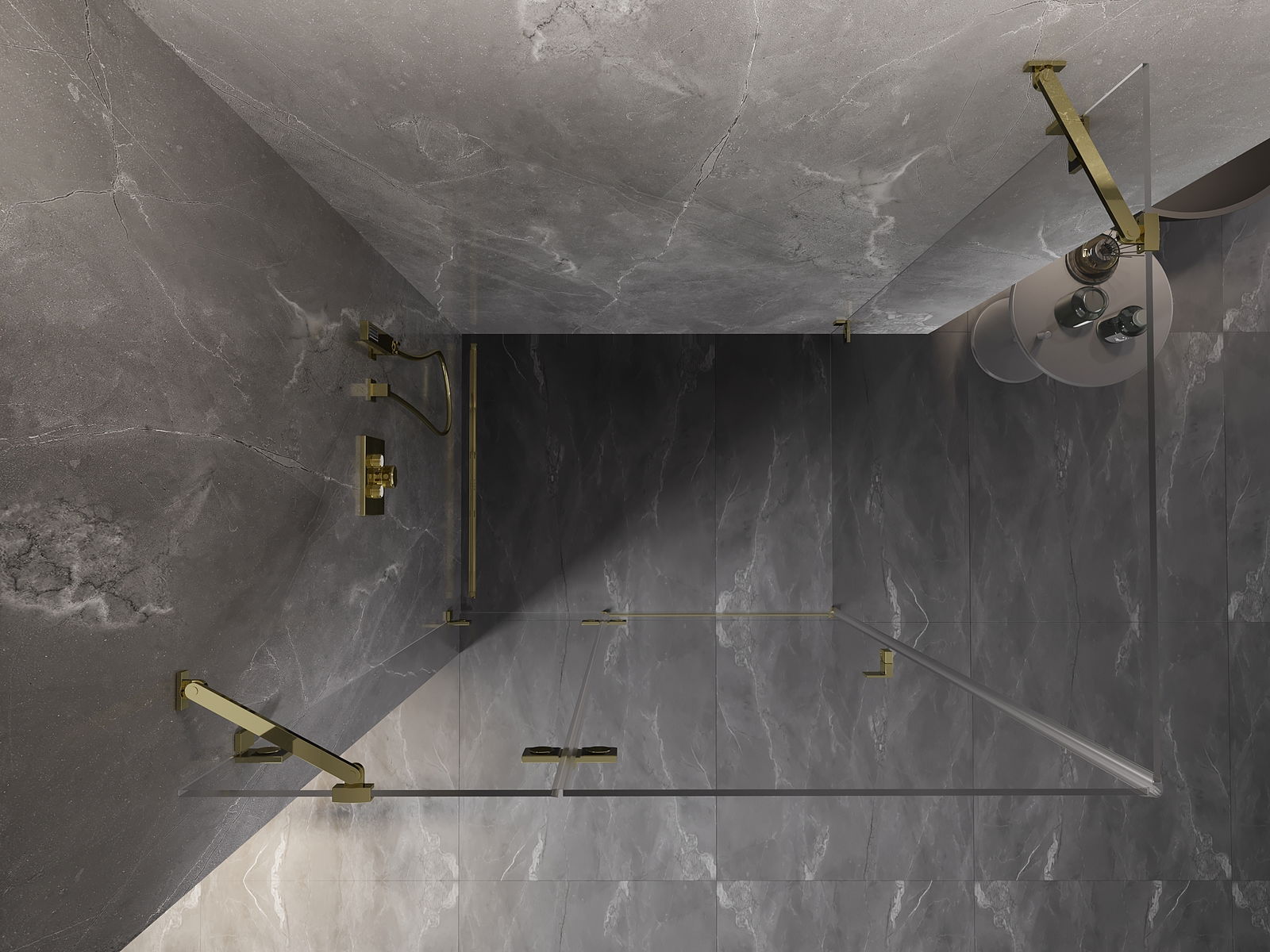 Mexen Lunar cabine de duche articulada esquerda 80 x 70 cm, transparente, dourada - 834-080-070-50-00-L