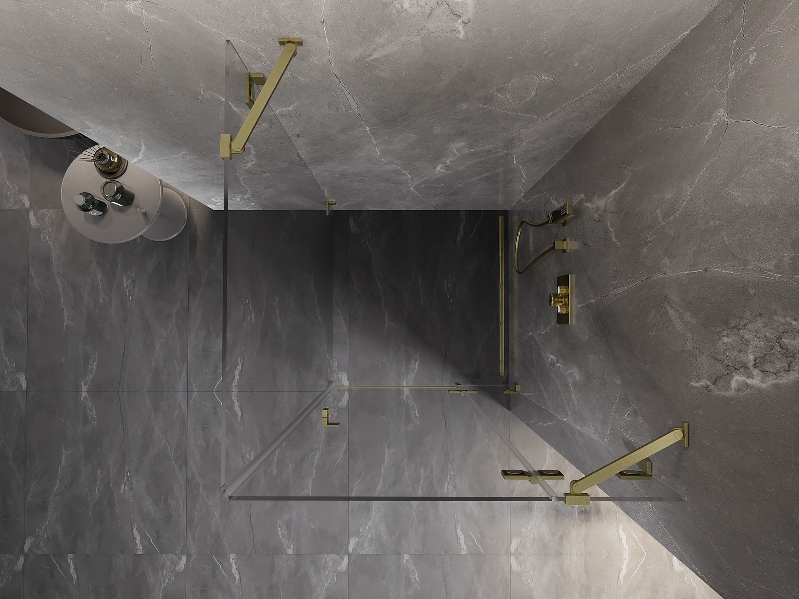Mexen Lunar cabine de duche pivotante direita 80 x 80 cm, transparente, dourada escovada - 834-080-080-55-00-P