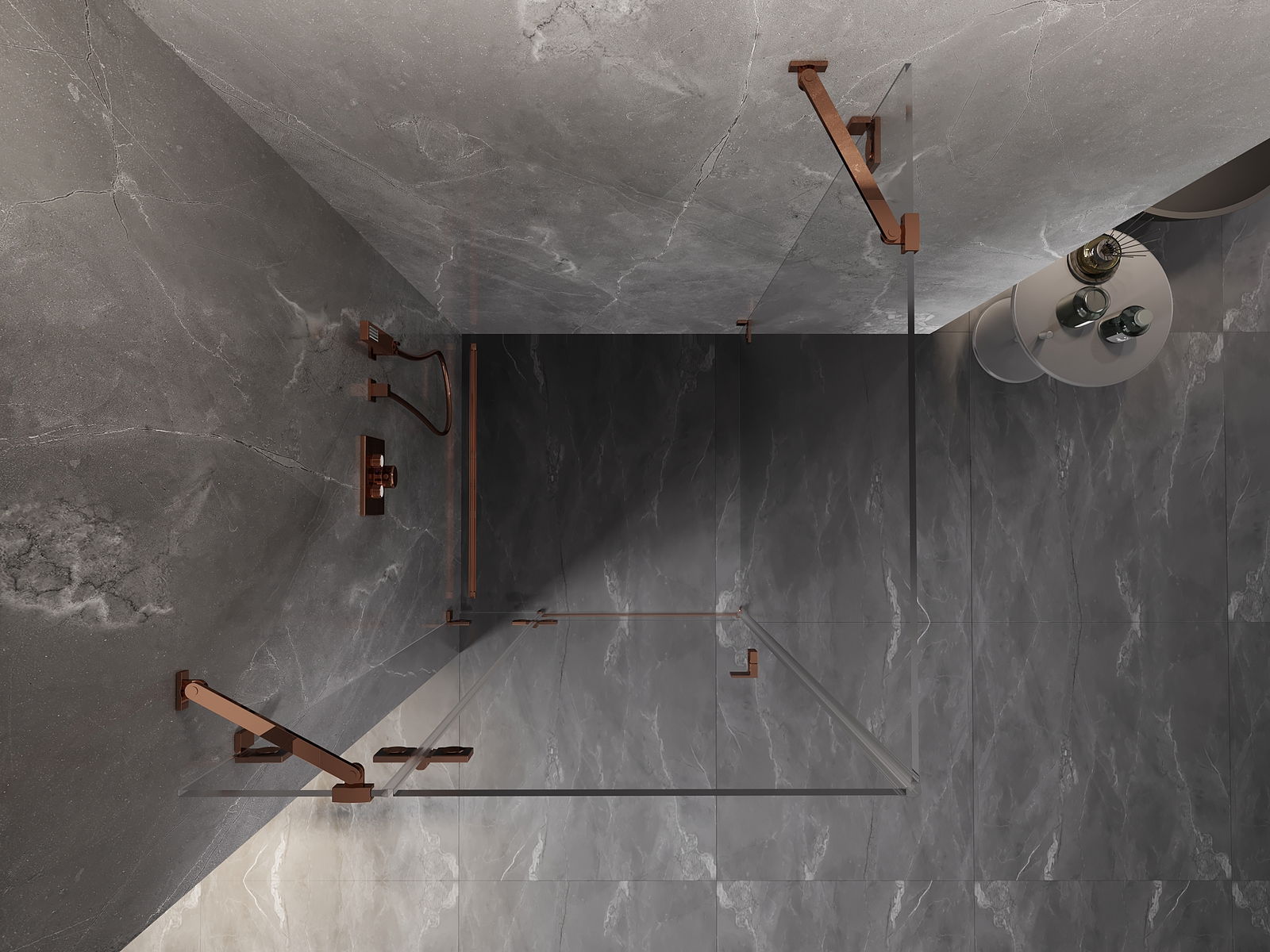 Mexen Lunar cabine de duche basculante esquerda 70 x 70 cm, transparente, ouro rosa - 834-070-070-60-00-L