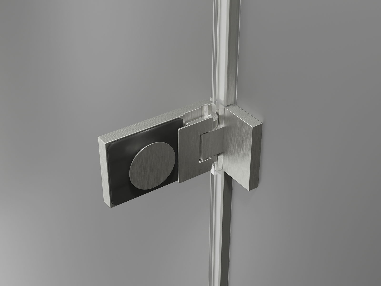 Garras e dobradiças de latão niveladas com a superfície do vidro