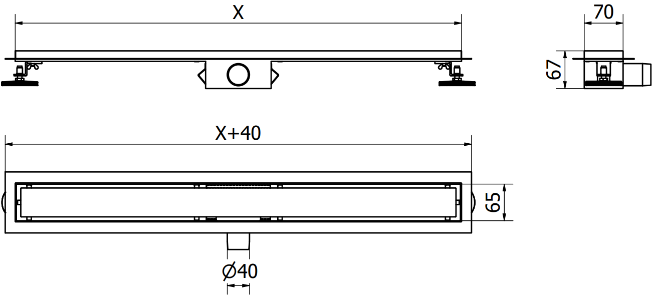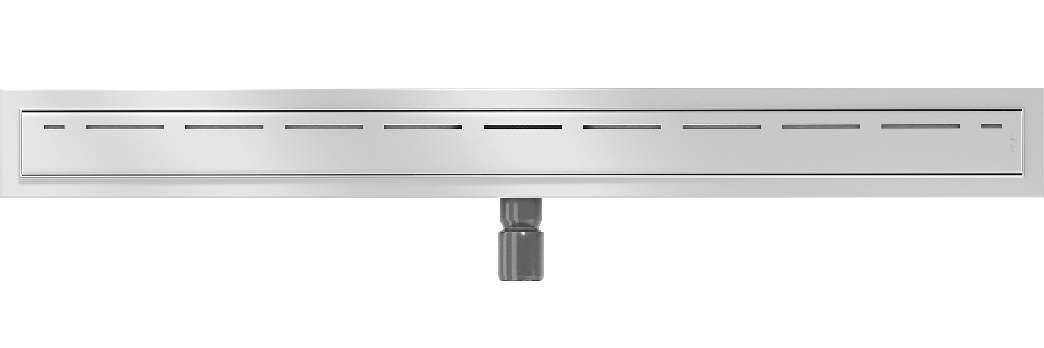 O escoamento linear é montado a uma profundidade de apenas 52 mm. A profundidade reduzida facilita a preparação da superfície para a instalação do escoamento e o nivelamento fácil, assegurando elevada estética e drenagem eficaz da água.
