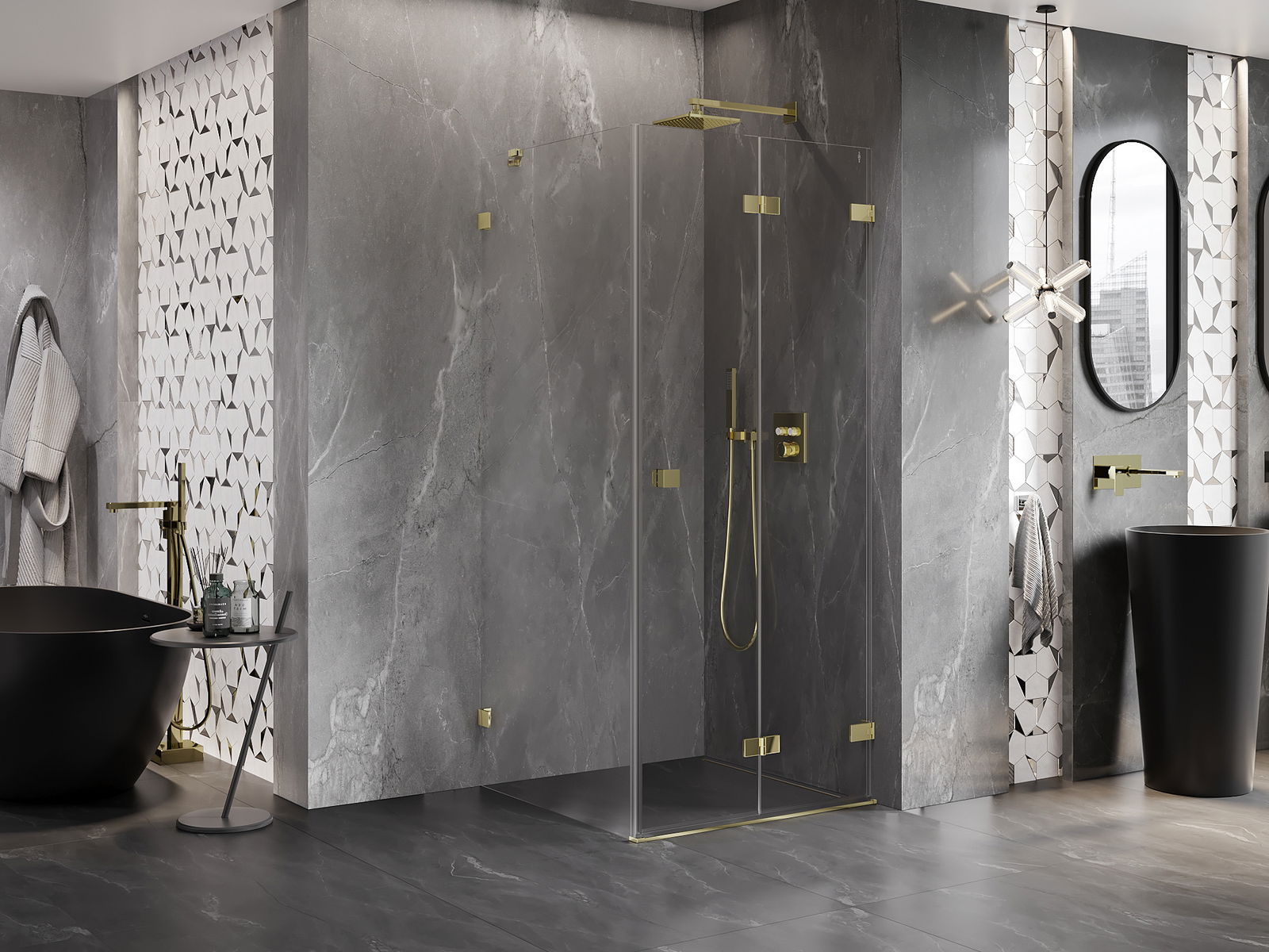 Mexen Lunar-F cabine de duche dobrável direita 100 x 100 cm, transparente, dourada - 836-100-100-50-00-P