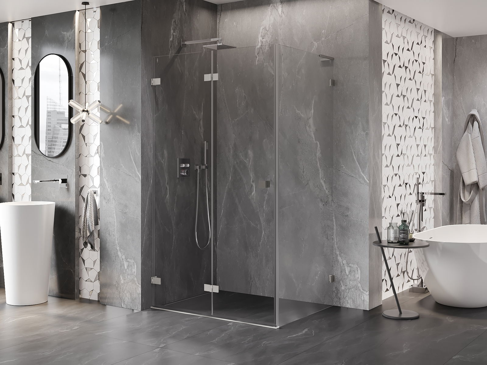 A possibilidade de dobrar as portas, tanto para o exterior como para o interior, permite obter mais espaço quando não se está a usar o chuveiro. Esta é a solução ideal para casas de banho mais pequenas, maximizando a utilização da superfície disponível.