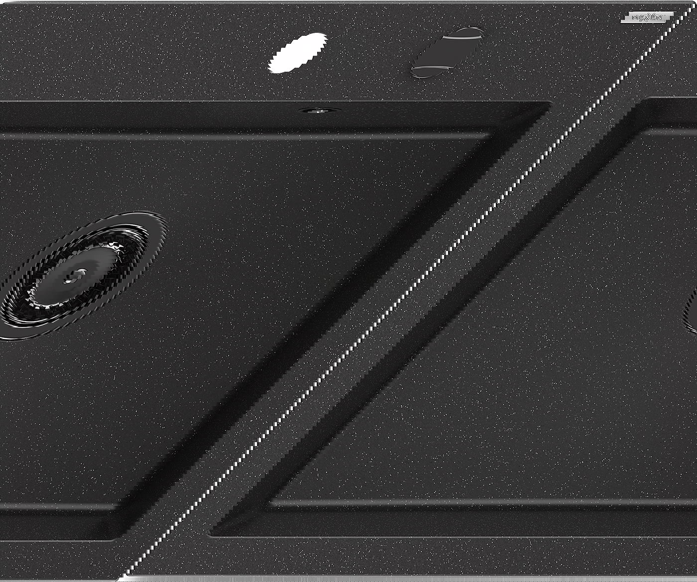 Mexen Elix lava-loiça de granito 1-cuba 600 x 500 mm, preto/prateado metálico, sifão preto - 6525601005-73-B