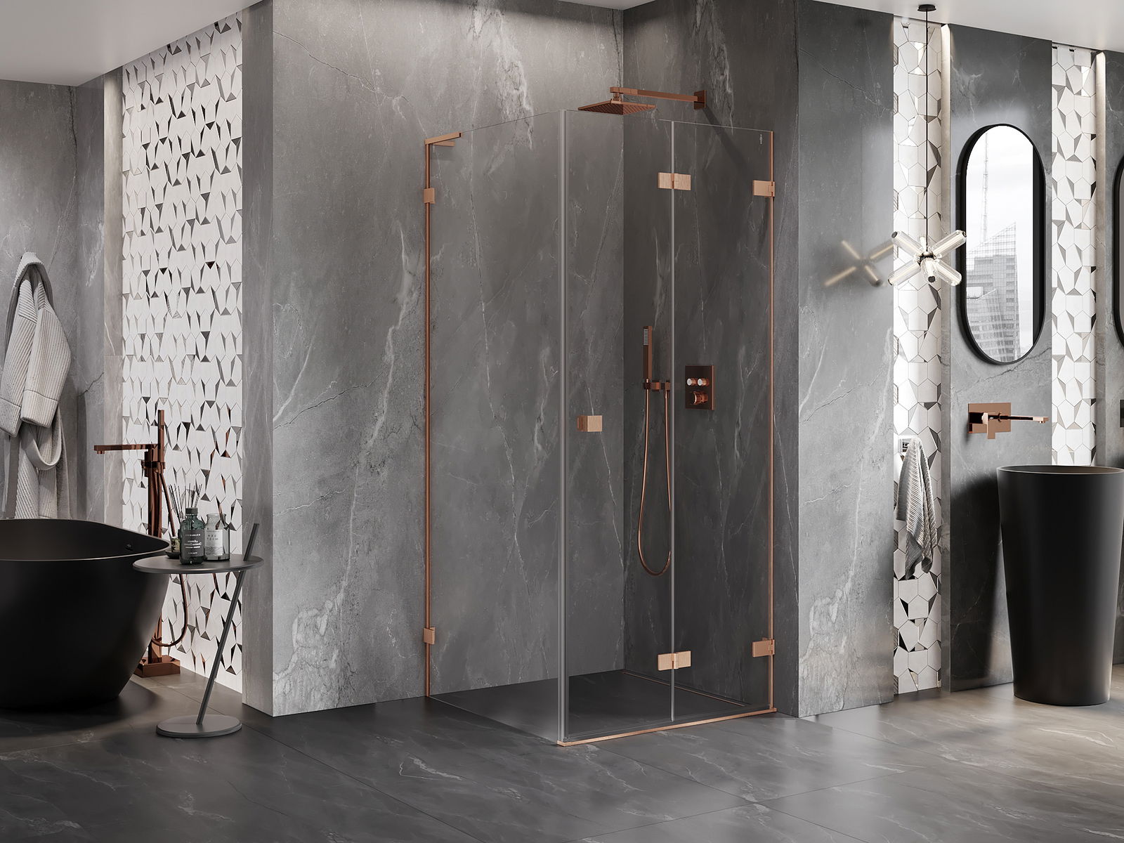A pega prática e confortável foi feita de metal durável e resistente. A forma moderna combinada com o acabamento ajustado à cor dos perfis confere a todo o conjunto uma aparência moderna e estilosa, realçando a estética de qualquer casa de banho.