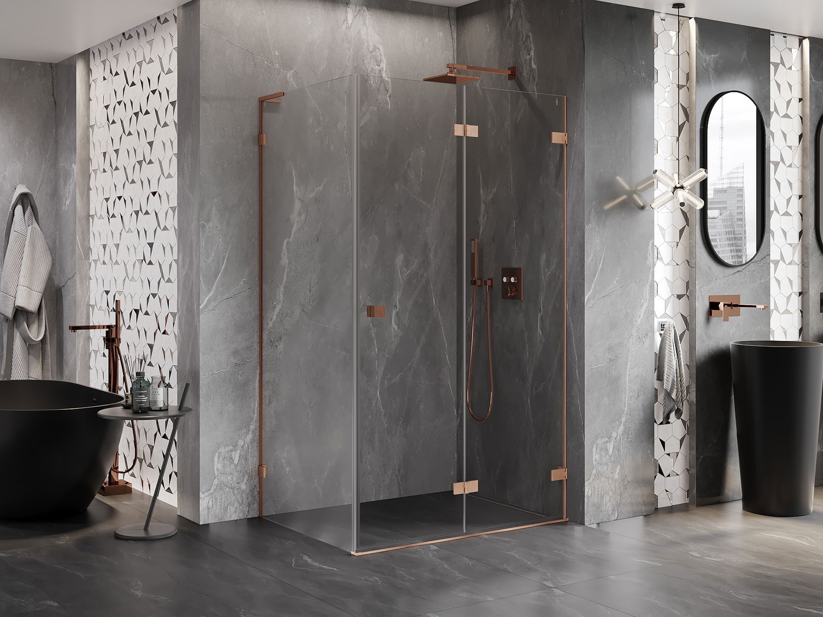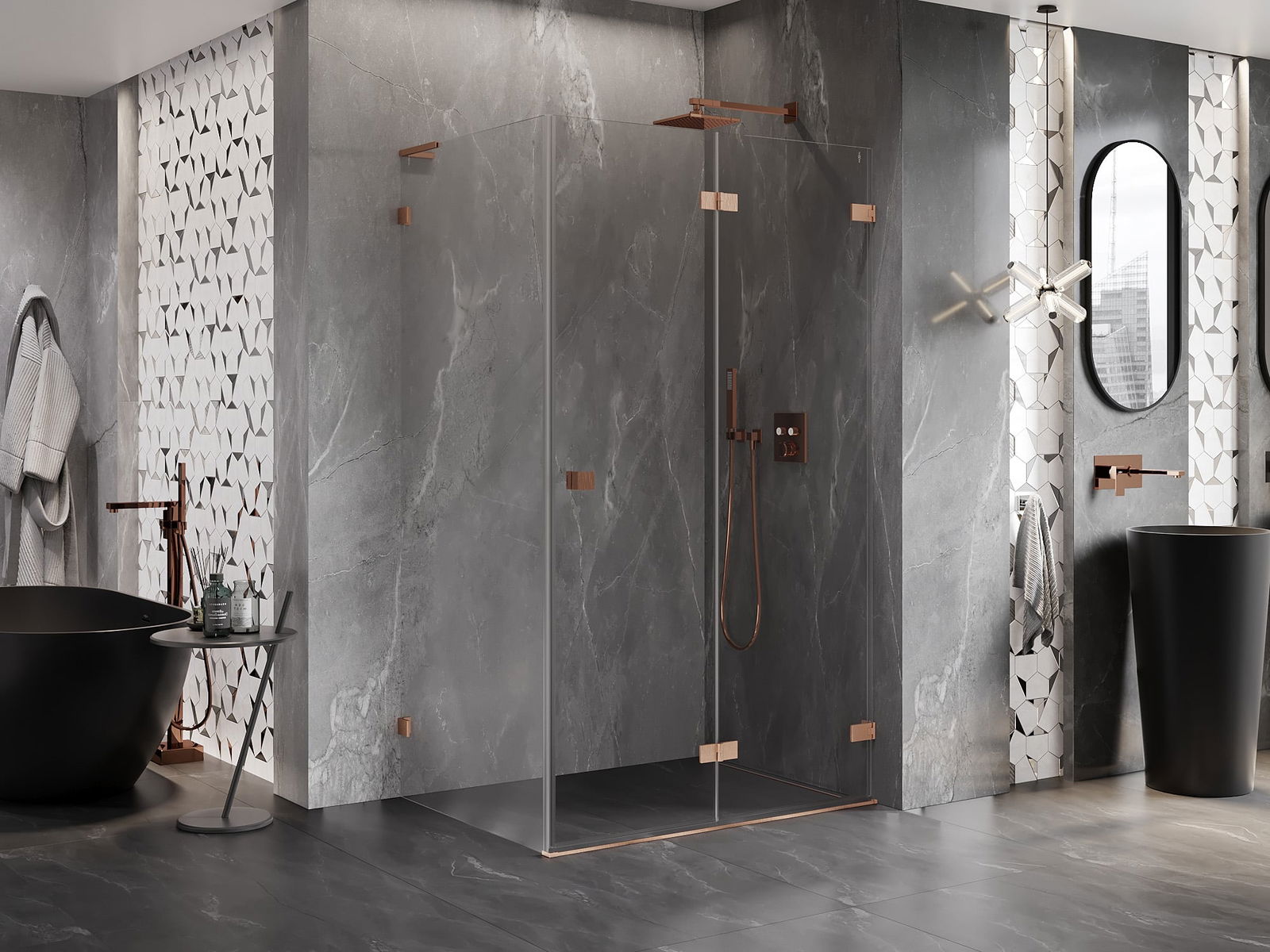A pega prática e confortável foi feita de metal durável e resistente. A forma moderna combinada com o acabamento ajustado à cor dos perfis confere a todo o conjunto uma aparência moderna e estilosa, realçando a estética de qualquer casa de banho.