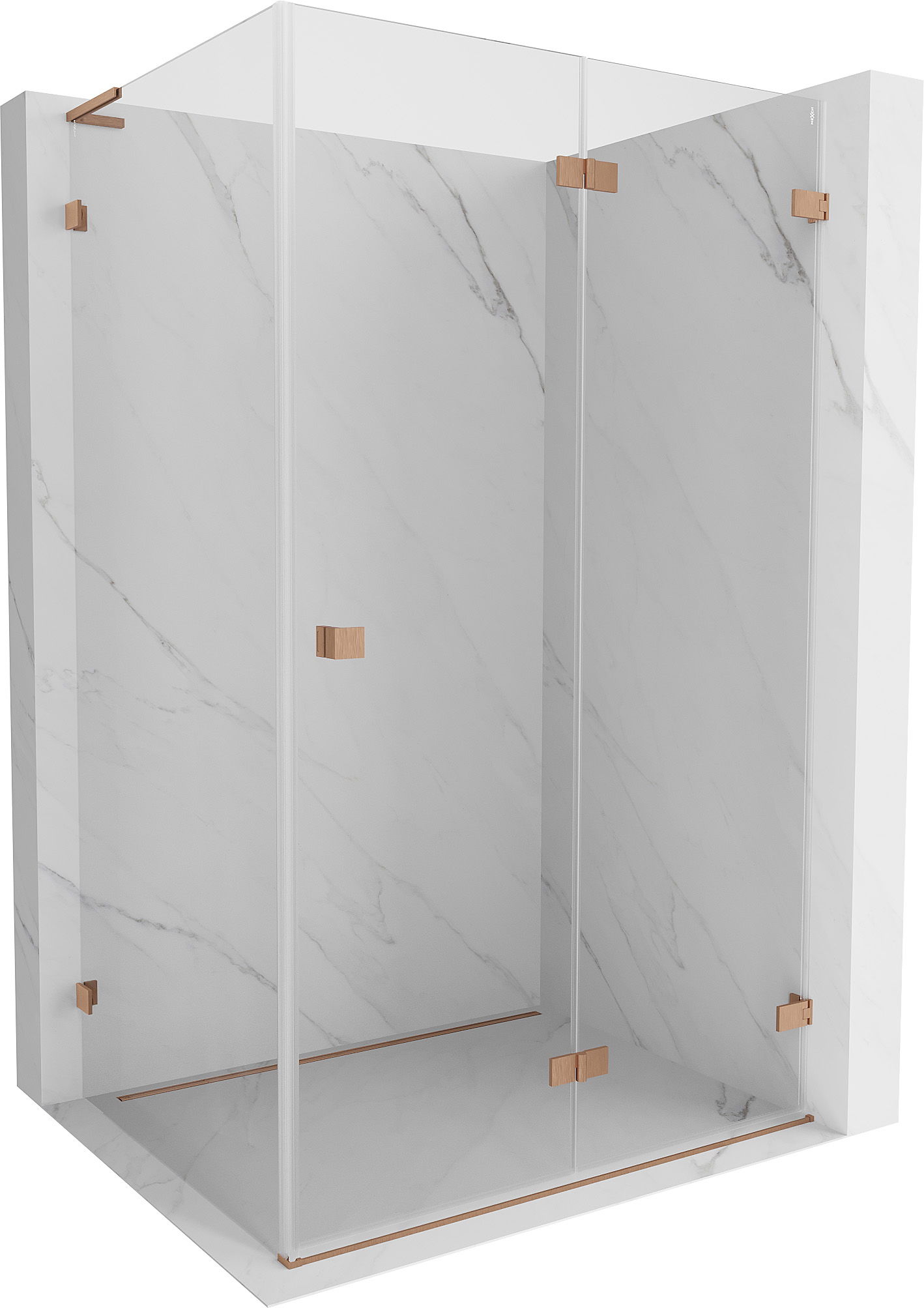 Mexen Lunar-F L cabine de duche dobrável direita 90 x 70 cm, transparente, cobre escovado - 836L-090-070-65-00-P