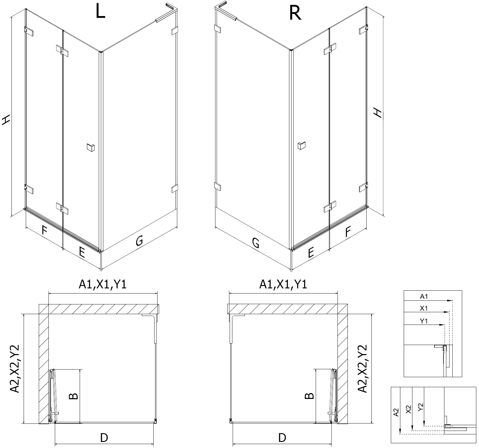 Espessura do vidro: porta 6 mm, parede 8 mm
