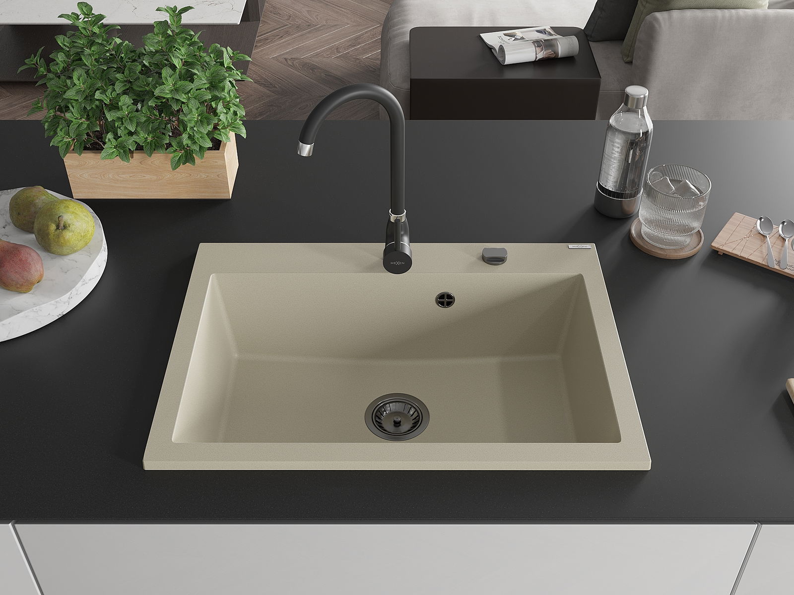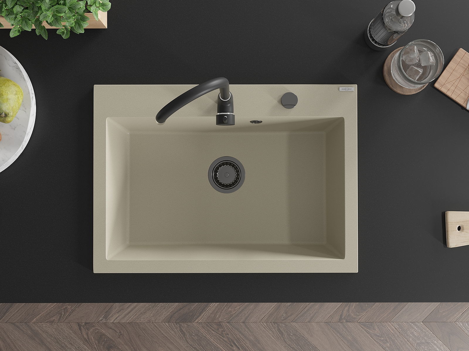 O lava-loiça é feito de granito de alta qualidade. Constitui um complemento elegante, e acima de tudo prático, para qualquer cozinha, independentemente do seu estilo. A alta qualidade e durabilidade do granito garantem muitos anos de utilização.