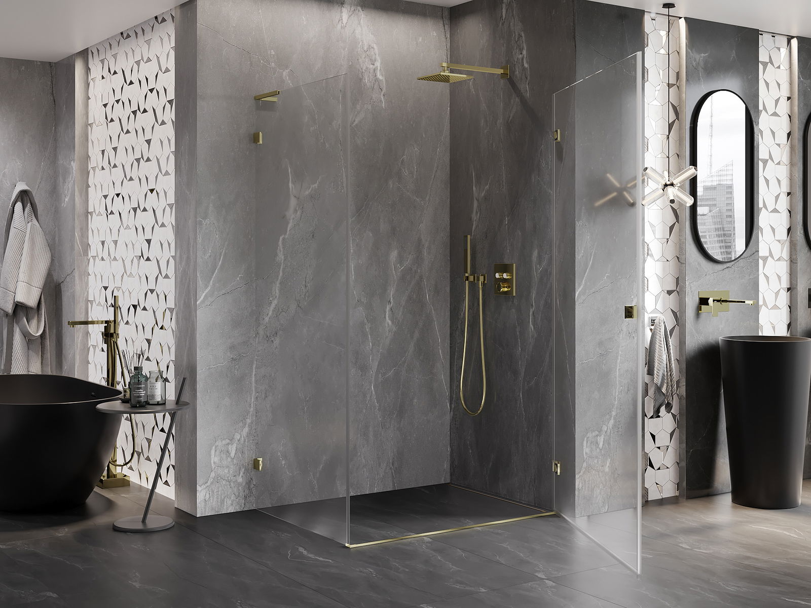 A pega prática e confortável foi feita de metal durável e resistente. A forma moderna combinada com o acabamento ajustado à cor dos perfis confere a todo o conjunto uma aparência moderna e estilosa, realçando a estética de qualquer casa de banho.