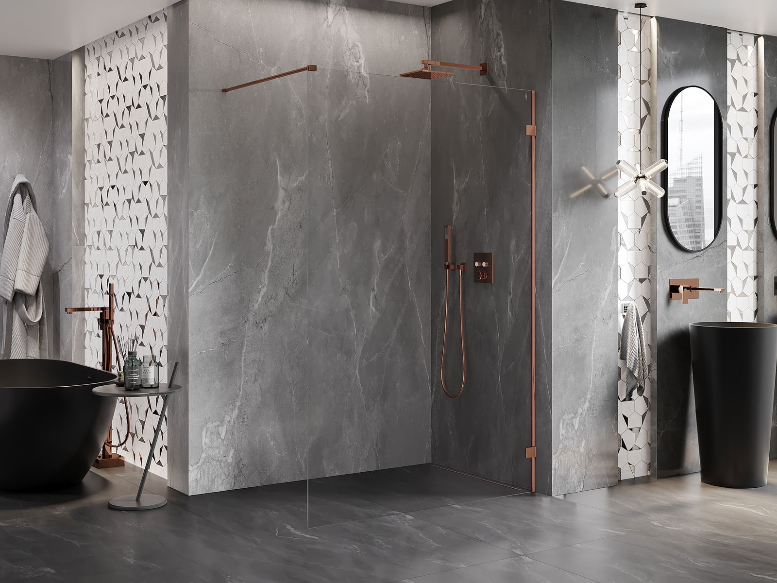 Mexen Lunar Parede de chuveiro Walk-in direita 160 x 200 cm, transparente 8 mm, ouro rosa - 830-160-000-60-00-P