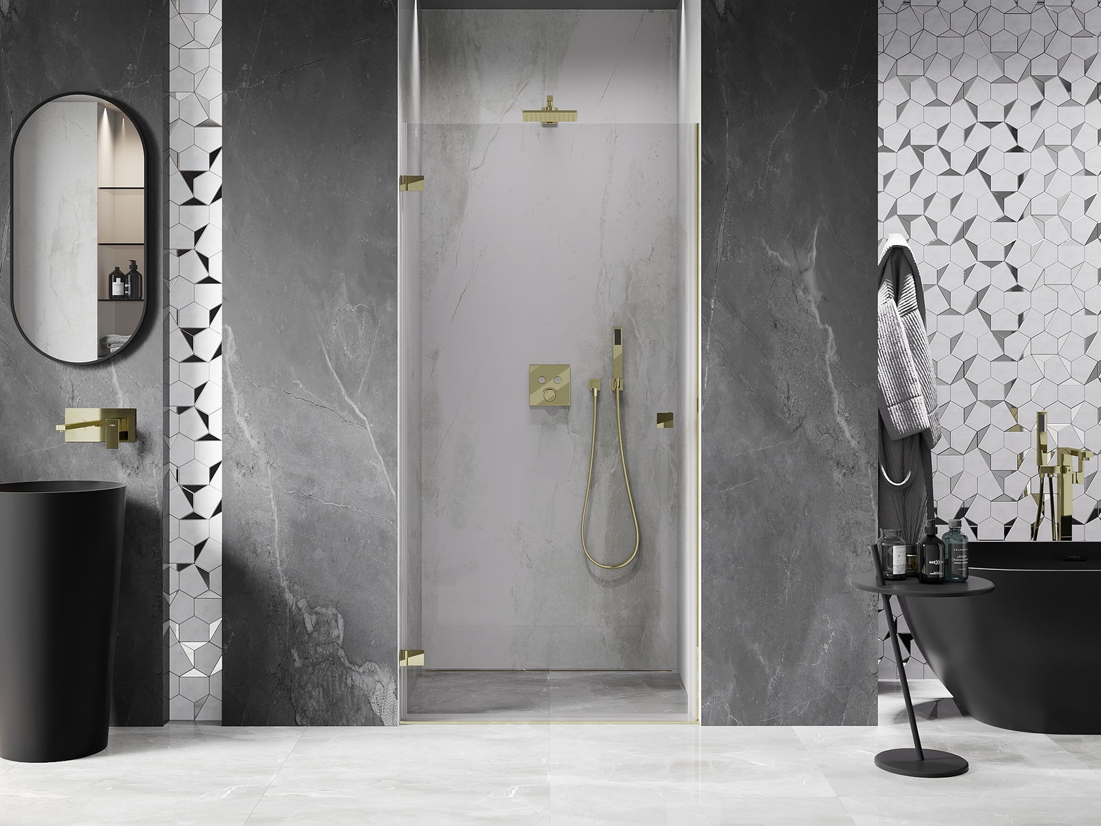 Mexen Lunar-B porta de duche de abrir à esquerda 85 cm, transparente, dourada - 832-085-000-50-00-L