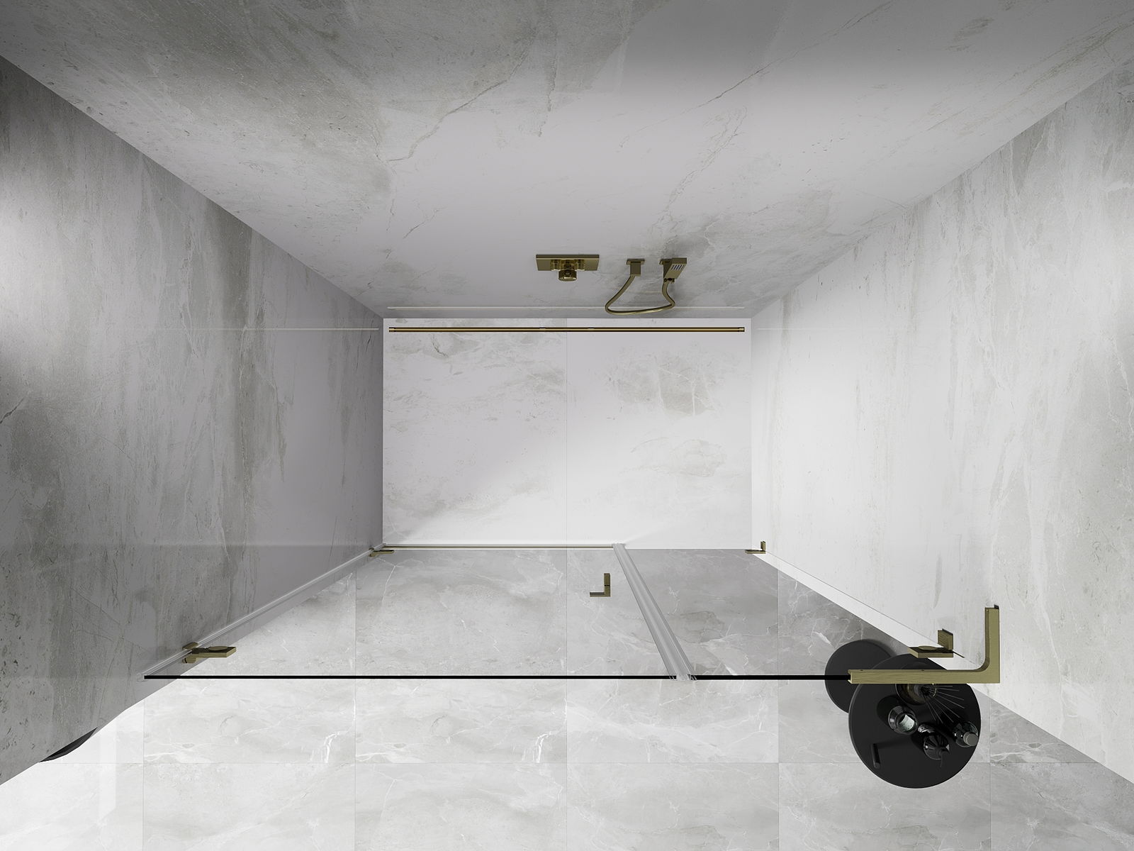 Mexen Lunar-B L porta de duche rebatível esquerda 120 cm, transparente, dourada escovada - 832SL-120-050-55-00-L