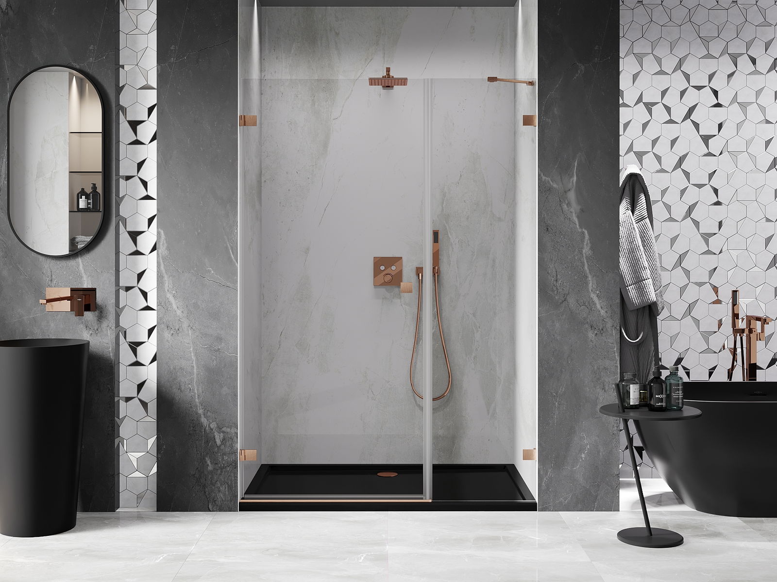 Mexen Lunar-B porta de duche pivotante esquerda 140 cm, transparente, cobre escovado - 832S-140-050-65-00-L