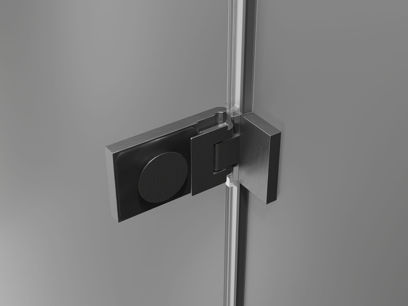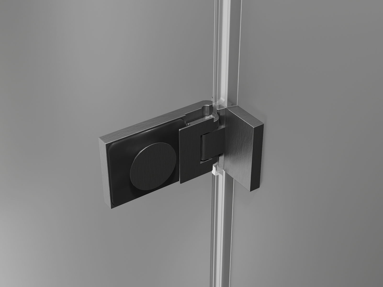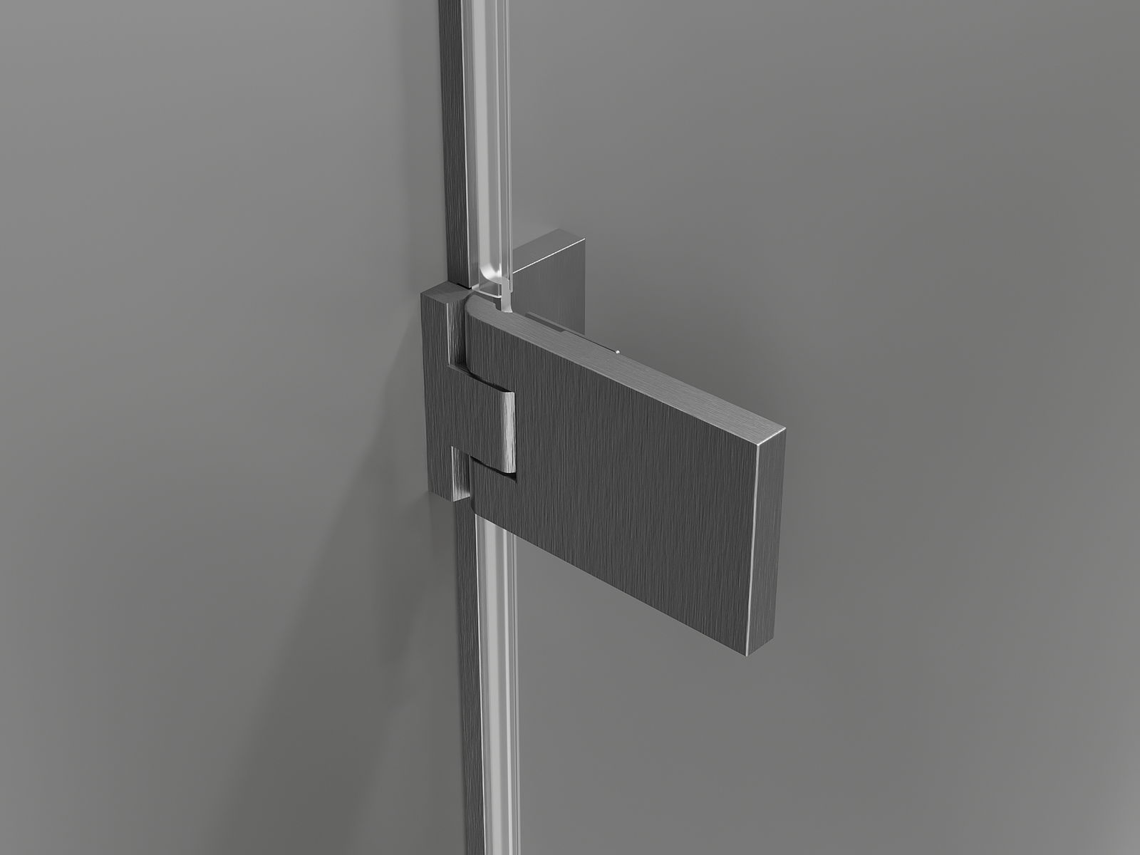 Grampos e dobradiças de latão alinhados com a superfície do vidro