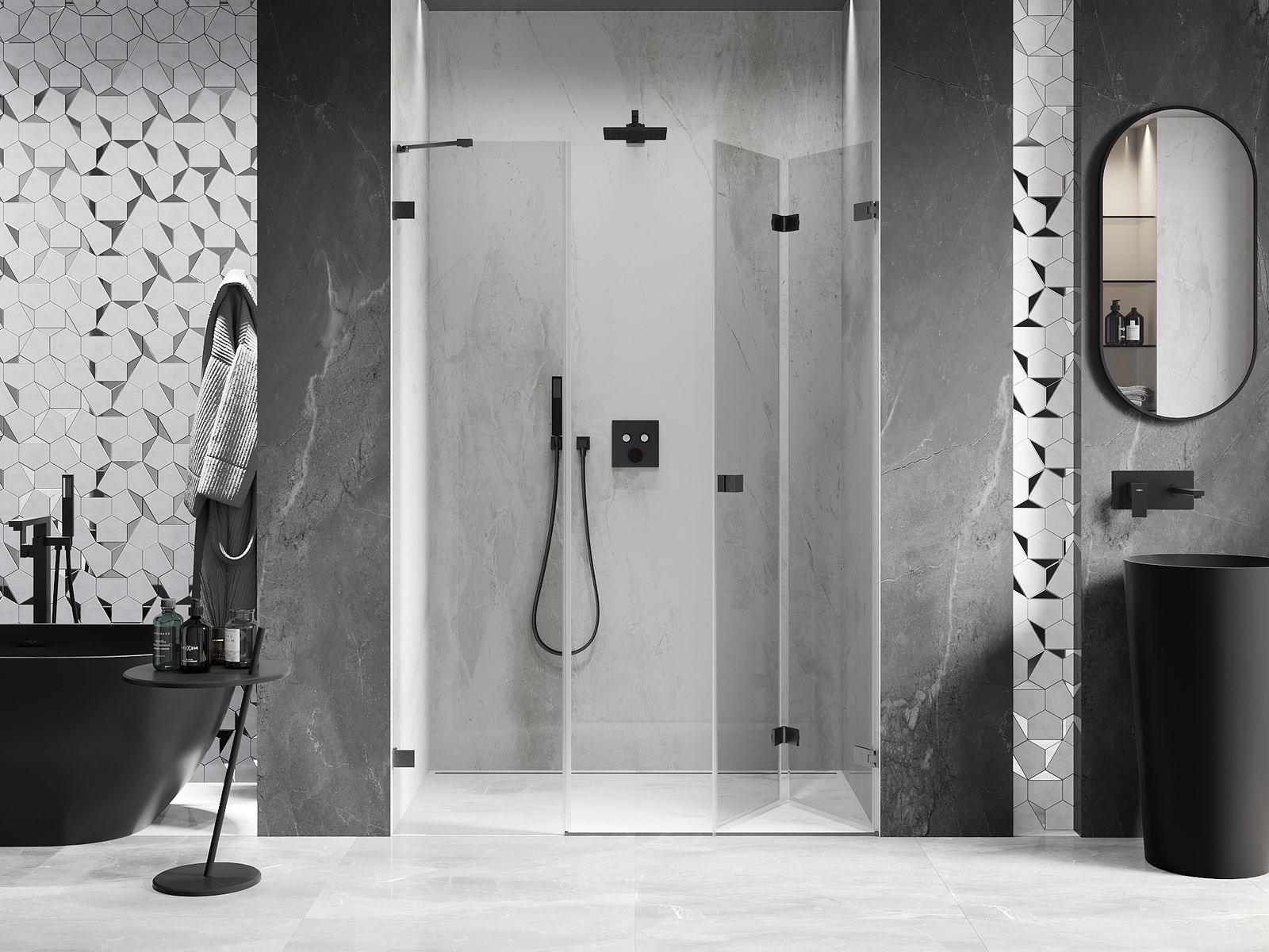 A possibilidade de dobrar as portas, tanto para o exterior como para o interior, permite obter mais espaço quando não se está a usar o chuveiro. Esta é a solução ideal para casas de banho mais pequenas, maximizando a utilização da superfície disponível.